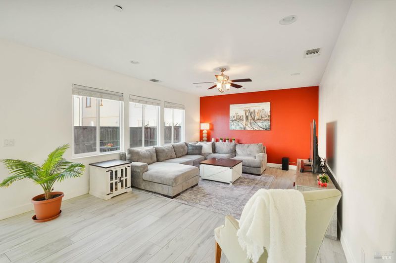 Nestled on a desirable corner lot in the close-knit community of Dixon, this spacious two-level home offers flexible living to suit a variety of needs. The main level features a private bedroom and full bath, ideal for guests or multi-generational living along with a generous kitchen complete with a granite island, ample cabinetry, and an open dining area that flows seamlessly into the large living room. A sliding glass door leads to the backyard, where a patio and irrigated grassy dog run create the perfect setting for summer barbecues, gardening, and outdoor entertaining. Upstairs, the primary suite offers a relaxing retreat with a soaking tub, separate shower, and a spacious walk-in closet. Two additional bedrooms, a third full bath, and a large flex/family room provide comfortable space for everyday living. A dedicated laundry room is conveniently located at the end of the hallway. Abundant closet space throughout the home ensures excellent storage. Additional highlights include a two-car garage with generous storage PLUS 4 car parking in driveway. Leased SOLAR with TWO TESLA batteries! Conveniently located within walking distance to Dixon High School, the Dixon May Fair grounds, and historic Downtown Dixon. Great location along the Hwy 80 corridor! 30 minutes to Sacramento, 45 to Napa and about an hour to San Francisco. VA and FHA eligible! Submit all offers!