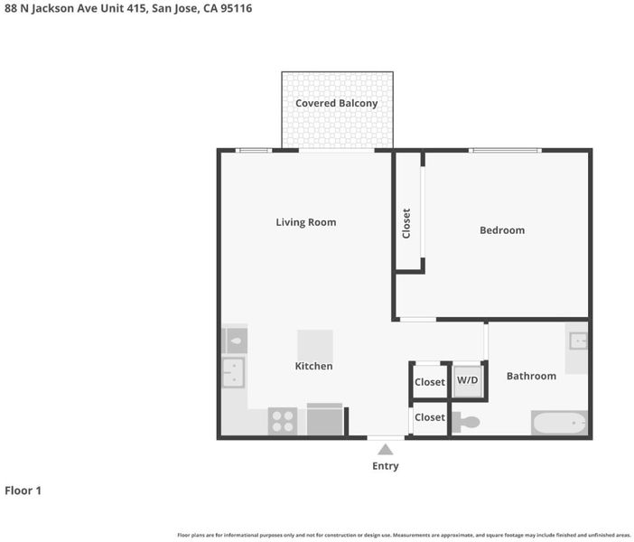 Resort-Style Living in the Heart of San Jose! Stylish 720 sq ft 1-bedroom condo located just 10 minutes from Downtown San Jose in a desirable community with pool, spa, fitness center, and recreation lounge. Includes secure gated garage parking with a dedicated space. Bright open-concept floor plan featuring a gourmet kitchen with granite countertops, center island, double sink, and ample cabinetry. The living area opens to a private balcony overlooking the community, perfect for relaxing. Additional features include in-unit stackable washer/dryer, central HVAC, tile and carpet flooring, and abundant natural light. Prime commuter location with easy access to HWY 680, 280, and 101, and minutes to San Jose International Airport, SJSU, shopping, dining, and major tech campuses. HOA $635/month. Ideal for first-time buyers, professionals, or investors seeking convenience and lifestyle in Silicon Valley.