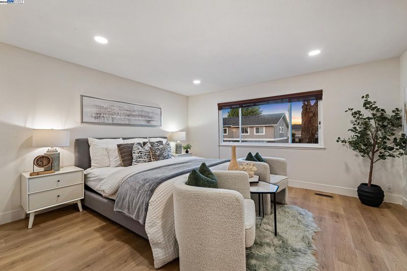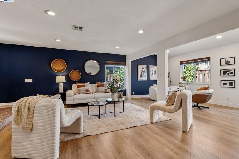 Welcome to your dream home in the highly sought-after Lakes & Birds neighborhood in North Fremont! This stunningly remodeled residence offers the perfect blend of modern elegance & comfortable living, all within the boundaries of top-rated schools: Warwick Elem, Thornton Jr High, & American High. Step inside to discover a spacious & inviting interior, featuring a formal living room, a formal dining area perfect for entertaining & a dedicated office space. Soaring vaulted ceilings & double-paned windows. Many upgrades include: a new roof (2016) & A/C (2023). Beautifully remodeled kitchen, new quartz counter tops & stainless steel appliances. Updated bathrooms, newer luxury laminate flooring throughout, fresh paint & contemporary light fixtures. Outside, enjoy a low-maintenance landscape w/a large patio & side yard. The property is a gardener's delight w/a variety of fruit trees (peach, apple, grapefruit, avocado & orange). Nestled in a tranquil, tree-lined street, this home offers easy access to the Alameda Creek Trail & is just moments from David Jones Park. Commuting is a breeze w/convenient access to major freeways (I-880, 84/92), BART & Silicon Valley's tech giants like Meta/Tesla/Google. Near Coyote Hills Regional Park, Ardenwood Historic Farm &the Islamic Society of East Bay