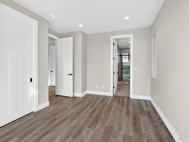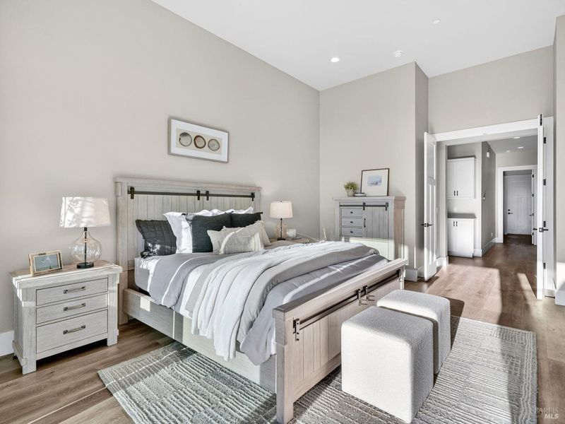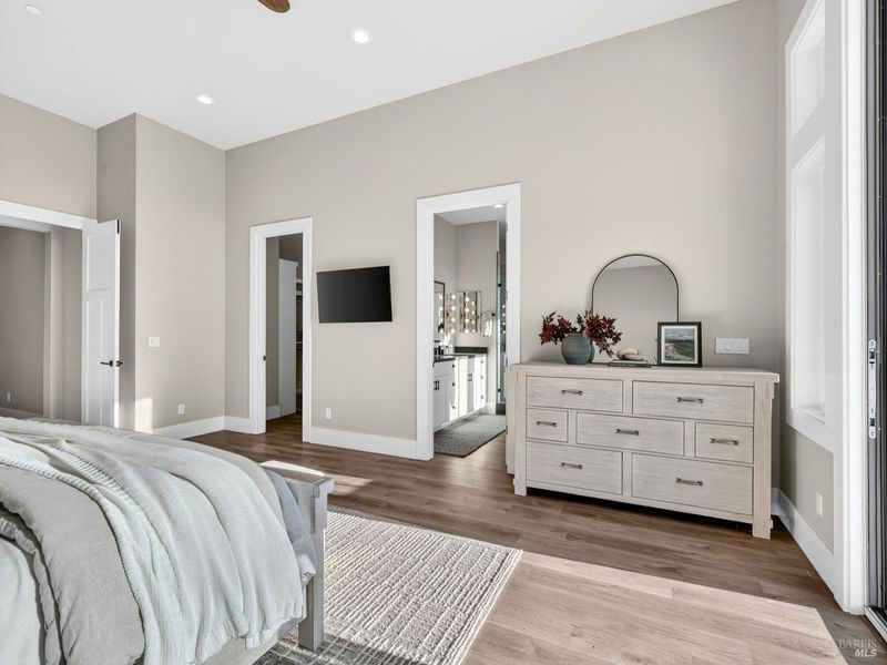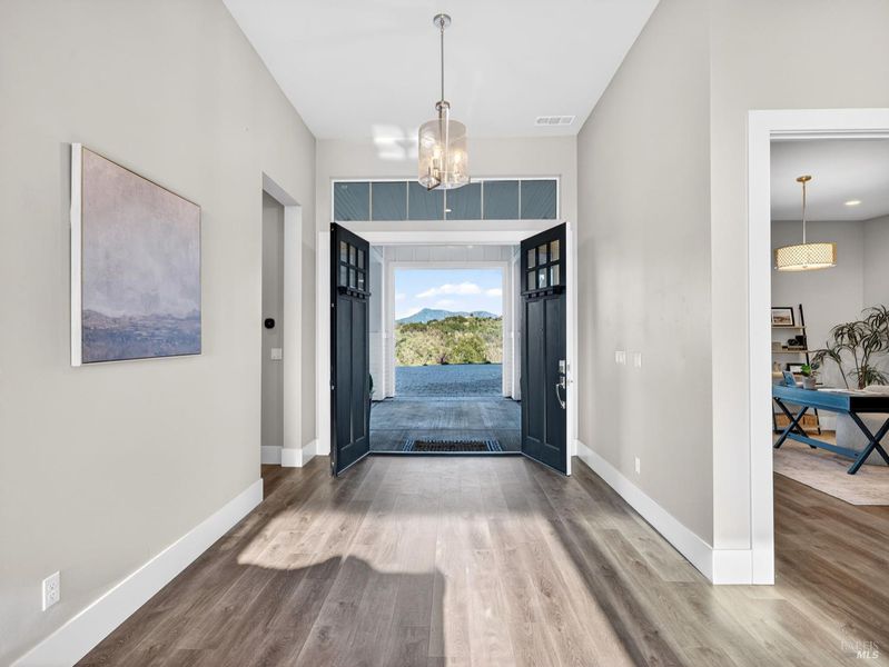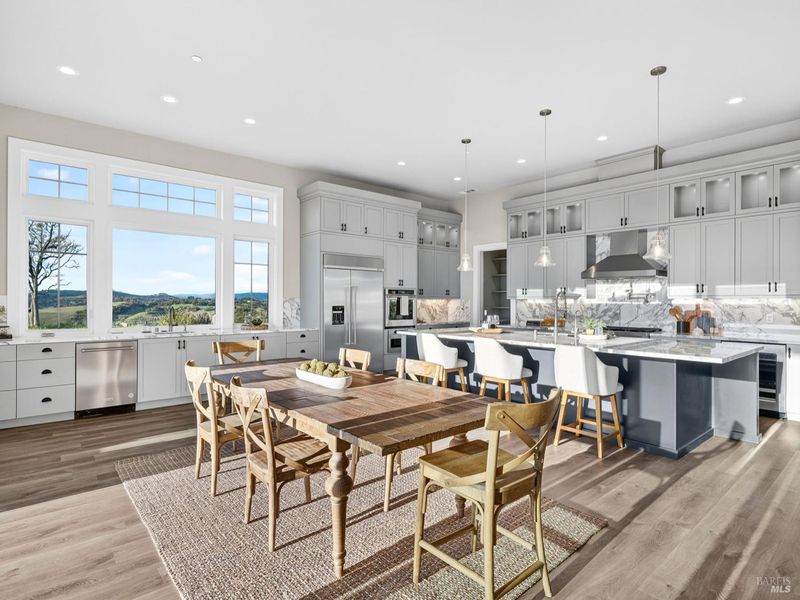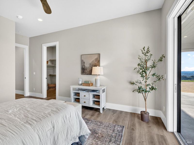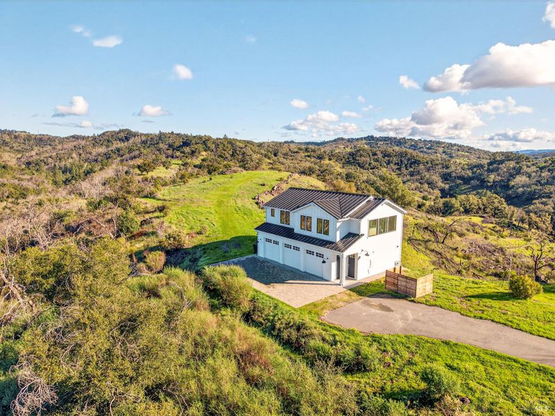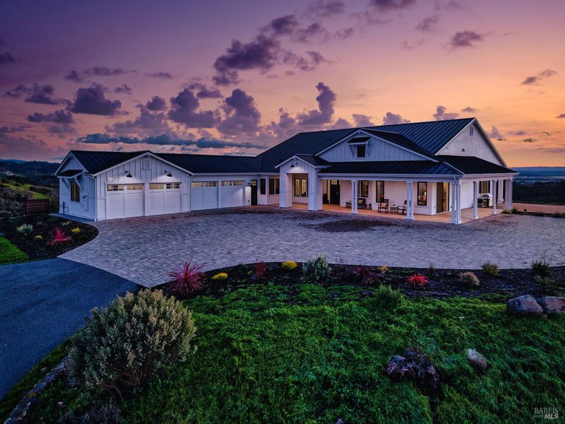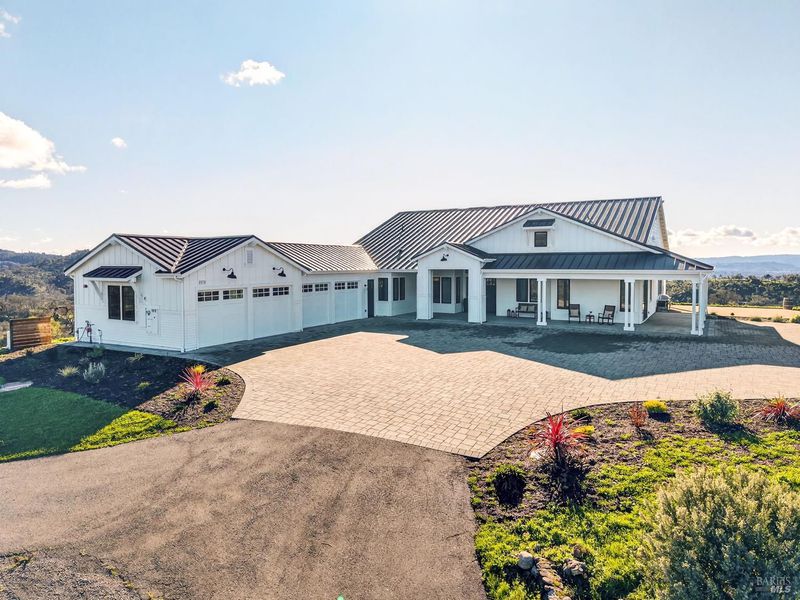Don't miss this truly exceptional Healdsburg estate, offering gated, private living on one of the most coveted roads in the area. A private bridge crosses a seasonal rocky creek, leading you into a serene, park-like setting where an enchanted pond with swimming and boat docks is framed by mature trees and a fenced orchard garden. Nearby, a newer RV creates the perfect hub for weekend campouts, swimming, barbecues, volleyball, and lakeside relaxation. Continue up the drive to the recently built modern farmhouse, completed by local builders in 2023. Inside, soaring ceilings and expansive walls of glass capture breathtaking, uninterrupted panoramic views from every room stretching across the Mayacamas, Mt. St. Helena, and rolling vineyard-lined valleys. The main residence features four bedrooms and three-and-a-half baths, a stunning great room, expansive outdoor decks, and deep garages with a large motor court ideal for car enthusiasts and entertainers alike. An adjacent ADU offers two bedrooms and two baths, its own fireplace, and equally impressive views, positioned above an expansive six-car garage and workshop. Set on approximately 100 acres with thoughtful improvements throughout, this rare wine country offering combines privacy, recreation, and refined living. A truly special property awaiting its next discerning buyer!