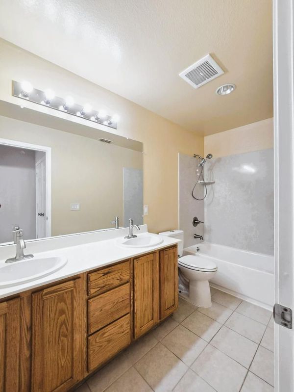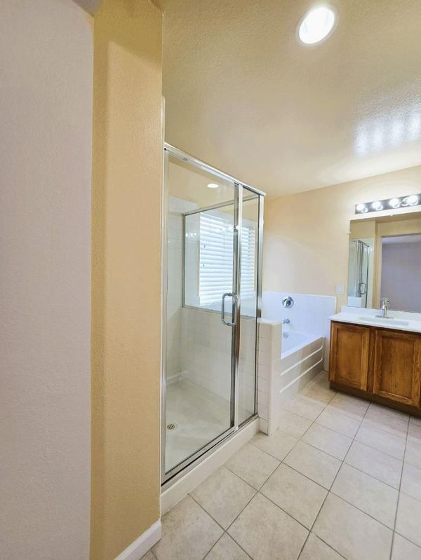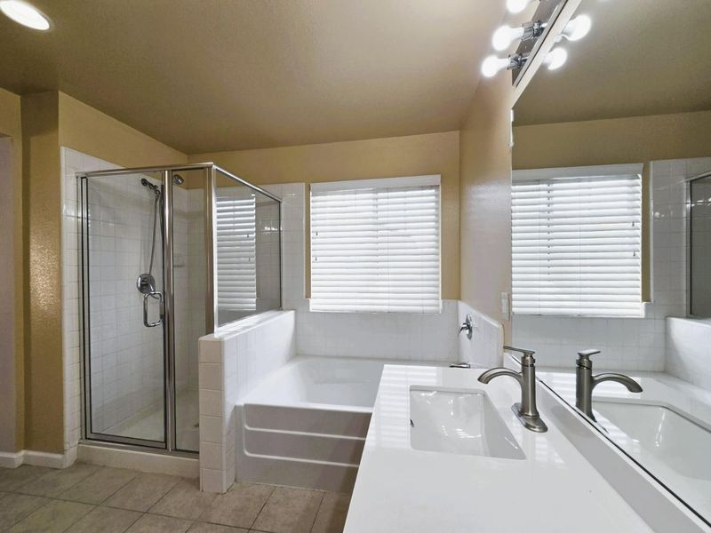 - Double Sinks, Dual Flush Toilet, Half on Ground Floor, Primary - Oversized Tub, Primary - Stall Shower(s), Shower and Tub, Shower over Tub - 1