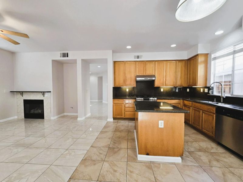 - Countertop - Granite, Dishwasher, Exhaust Fan, Garbage Disposal, Hood Over Range, Island, Oven Range - Gas