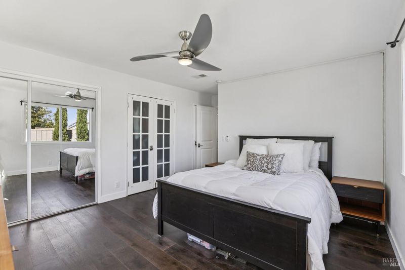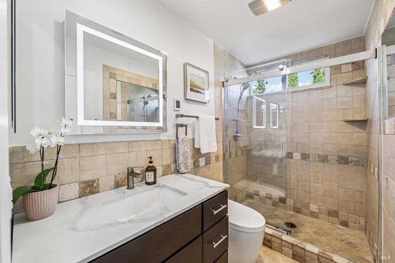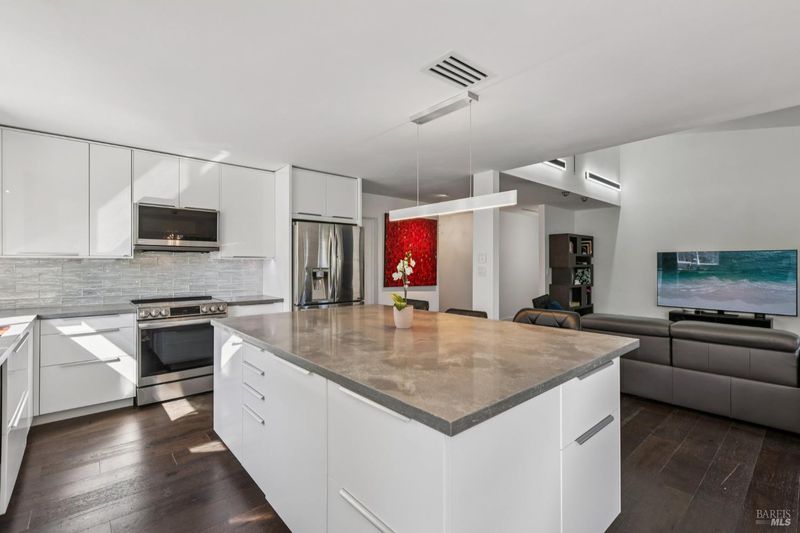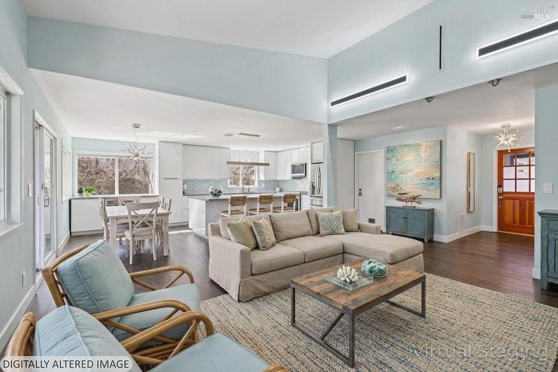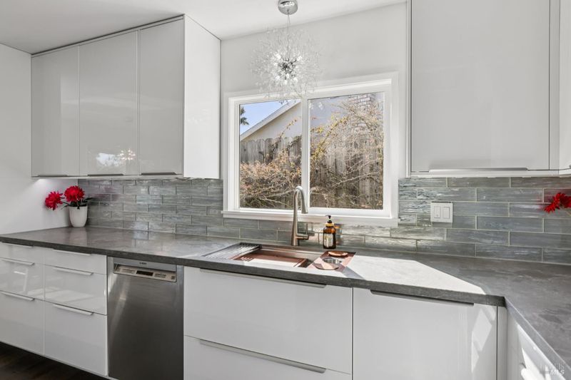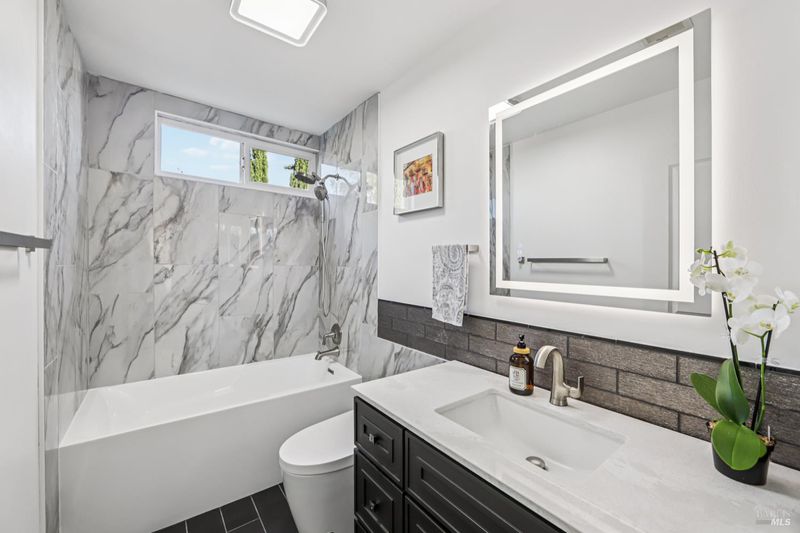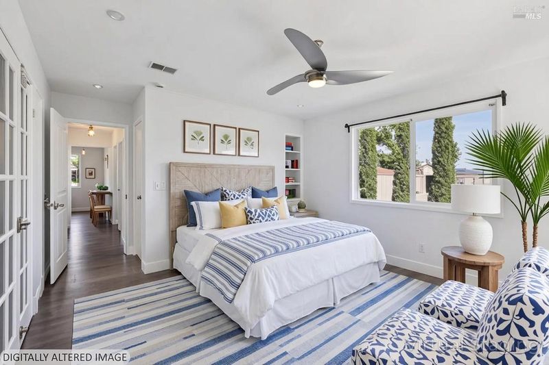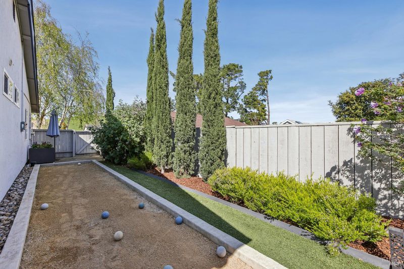 Water View & Owned Solar: Architect-Led Designer Home on Quiet Court. Wake up to the Carquinez Strait. This isn't a typical Benicia ranch. It's an architect-reimagined single-story retreat where every detail, from the radiant-heated spa floors to the Strait views framed in your bedroom window, was designed with intention. No stairs. Just move in. Kitchen: At the center of this home is a large, show-stopping designer quartz island with integrated dining. The professional-grade appliance suite features a premium LG induction range, an LG integrated ventilation/microwave system, an LG 4-door French door refrigerator with a dedicated flex-drawer, a Bosch dishwasher, and a stainless steel wine refrigerator. The kitchen is anchored by a high-end stainless steel workstation sink and a full-extension drawer system with abundant storage, hidden internal drawers, and a specialized pantry. Bedrooms and Bathrooms: Wake up to an amazing sunrise over the Carquinez Strait from the primary bedroom. This 3-bedroom home features 6 closets for ample storage. Two designer bathrooms in a back-to-back layout offer a private wellness wing. The primary bath includes radiant floor heating. The secondary bath features a deep acrylic soaking tub. Both include dual-function shower systems, bidet washlets, and quartz vanities. Garage & Exterior: Oversized 24.5-foot deep garage suitable for full-size vehicles, a workshop, mechanicals, and laundry. Full side-yard boat access and RV parking. Property infrastructure includes French drains and a dedicated drain field to ensure the property handles the seasons correctly and quietly. Outdoor & Energy: Green Home with owned solar system with grandfathered NEM 2.0 status. The backyard is a destination with 3 patios, a pergola, a bocce court, and a mature flower and fruit orchard. Private, top-of-the-hill cul-de-sac location with no through-traffic. Lot's of natural light throughout the home. Architect-designed Single-story Carquinez views Modern kitchen Spa bathrooms Owned solar 24.5' garage RV/boat access.