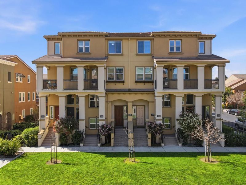 *Welcome to this charming end-unit, corner townhouse-style condo situated in the heart of Newarks Prima community, with the privilege of facing the greenery central courtyard! Step out onto the spacious private balcony overlooking the courtyard, perfect for morning coffee or evening unwinding. This beautifully designed two-story residence features 3 bedrooms and 3 full bathrooms, including two private suite-style bedrooms, each with its own en-suite bath situated on separate floors for maximum comfort, flexibility, and privacy. Newly installed carpet throughout the suite levels adds warmth, softness, and an inviting relaxation. The open concept kitchen flows seamlessly into the living and dining areas, creating an ideal space for both everyday living and entertaining. A convenient same level bedroom and full bathroom offer versatility for guests, a home office, or multigenerational living. Recent upgrades include new carpet and fresh interior paint, EV car charger giving the home a clean, modern convenient & feel. Located in a family, kid, and pet-friendly gated community, this home offers a prime location minutes from Newpark Mall, with easy access to I-880, BART, Costco, Fremont Hub, Whole Foods, and Trader Joes & more!