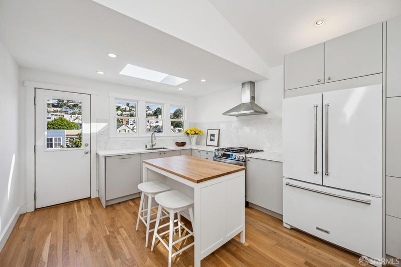 This completely reimagined 1925 Marina-style bungalow with an eye towards today's contemporary lifestyle is a perfect fit for the buyer who appreciates clean lines, open spaces and the beauty of light. A beautifully designed retreat offering skylights throughout that bathe the home in natural light, while tall, loft-like ceilings and an open-concept kitchen create an airy, expansive feel. The home features a sleek Euro-style kitchen, with updated appliances. The thoughtfully designed layout features two well-proportioned bedrooms, including a primary bedroom with bath. The living space flows seamlessly outdoors to a deck, ideal for lounging or gathering with friends, that overlooks a beautifully landscaped garden and sweeping views of the surrounding hills and neighborhoods. Stairs lead down to the garden which showcases mostly native, low-maintenance plants that remain lush and in bloom year-round and framed by a private wall of green created by a mature pittosporum hedge and fragrant night-blooming jasmine. A small section of artificial lawn provides a play area perfect for toddlers or dogs. In the evening, the garden transforms into a romantic setting with sparkling city lights in the distance. The garden is truly an enchanting backdrop both day and night. You'll be part of welcoming community on a close-knit street, where neighbors gather often and look out for one another. EV charger in garage. The location offers exceptional convenience, with easy walking access to Whole Foods on Ocean Avenue, Safeway on Monterey Boulevard, Canyon Market in Glen Park Village, and nearby BART. As well as unmatched connections to Highways 101 and 280 make commuting effortless, while coastal escapes such as Ocean Beach and Fort Funstonrenowned for scenic dog-friendly trailsare just a short drive away. An 85 Excellent Transit Score and Very Walkable 70 Walk Score.