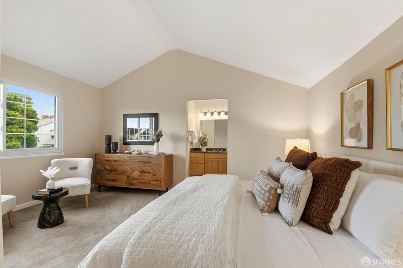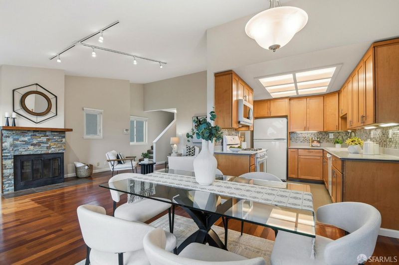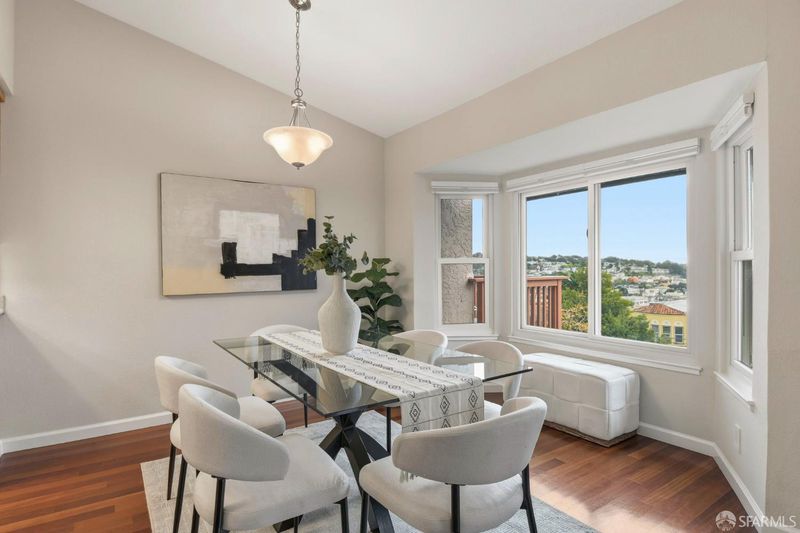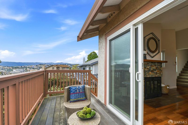 Stunning End-Unit Townhome in Silverview Terrace with City and Bay Views! This beautifully maintained three-bedroom, two-bath, partially detached end-unit townhome in Silverview Terrace, San Francisco. This home offers serene city and bay views to the south and an open, light-filled layout ideal for modern living. The main level features an open floor plan with a kitchen, dining area, and expansive living room complete with a cozy fireplace and elegant Brazilian Cherrywood floors. Sliding glass doors open to a charming backyard patio equipped with a sprinkler system, perfect for outdoor entertaining or relaxing in privacy. A major recent investment includes new energy-efficient Andersen windows and patio doors installed in 2024. These high-quality upgrades enhance comfort, insulation, and overall value and are still virtually brand new. Downstairs, you'll find two generously sized bedrooms and a convenient side-by-side washer and dryer in a separate closet. The top level boasts a luxurious primary suite with a walk-in closet plus a second spacious closet, providing ample storage and comfort. Parking is effortless with two side-by-side garage spaces plus two additional spots on the driveway. The HOA covers exterior painting, common area maintenance, roof maintenance, driveway care, and more, making homeownership easy and worry-free. Perfectly situated for convenience, this home offers easy access to freeways southbound and downtown San Francisco, while also being within walking distance to public transportation on 3rd Street, making commuting and exploring the city effortless.