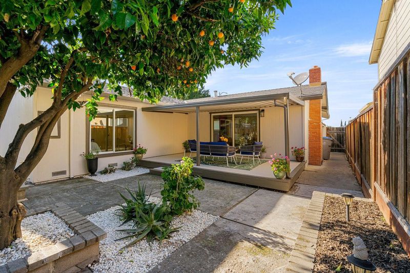 Bright single-story living with hillside views and seamless indoor-outdoor flow in the desirable Berryessa neighborhood. This four-bedroom home offers approximately 1,517 SF of thoughtfully designed living space. A standout feature is the rare open outlook with unobstructed hillside views, made possible by the unique setting with no homes directly across the street. Large windows frame the scenic backdrop, while a newly installed paver driveway and entry enhance curb appeal. The remodeled kitchen connects seamlessly to the dining and family area, where sliding doors open to a covered backyard deck designed as an outdoor living room, creating effortless indoor-outdoor living for everyday use and entertaining. Inside features include solid hardwood flooring, recessed lighting, two fireplaces, smart home features including Nest thermostat and Blink doorbell, and fresh interior and exterior paint. The spacious primary suite offers backyard views and dual closets, while comfortably sized secondary bedrooms provide flexibility for family, guests, or a home office. The expansive backyard includes mature fruit trees, low-maintenance patio areas, a private setting with minimal overlooking, and potential for a future detached ADU. Excellent schools and great commute location.