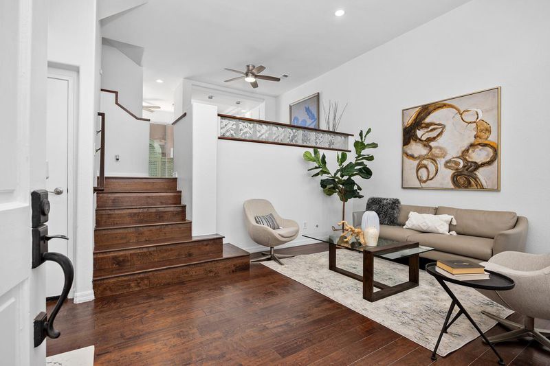 Recently refreshed Carmel Valley townhome with approximately $33,000 in home improvements. The interior features new paint throughout, refinished kitchen cabinetry, updated tile flooring in both bathrooms, and a fully updated guest bathroom. Additional upgrades include new vinyl flooring on the garage staircase, refinished stair and hallway railings, and enhanced lighting with new LED ceiling lights and dining pendant fixtures. The bright, open floor plan offers a cozy fireplace with updated quartz flooring in front, creating a warm focal point in the living area. Enjoy both a private front patio and a balcony, providing comfortable outdoor spaces for relaxing or entertaining. The home also features engineered wood flooring, quartz kitchen countertops, full-size washer and dryer, generous storage, and an attached two-car garage. The air conditioning system was replaced in 2022, offering improved comfort and efficiency. Ideally located near shopping, parks, and top-rated schools including Carmel Creek Elementary School, Carmel Valley Middle School, and Torrey Pines High School. Community amenities include a pool and spa. HOA dues include water, sewer, and trash, and there is No Mello-Roos.