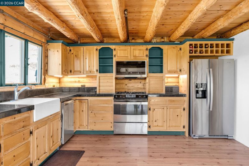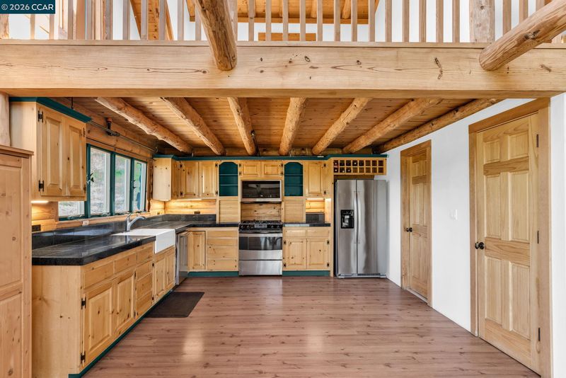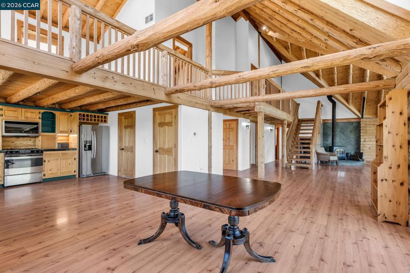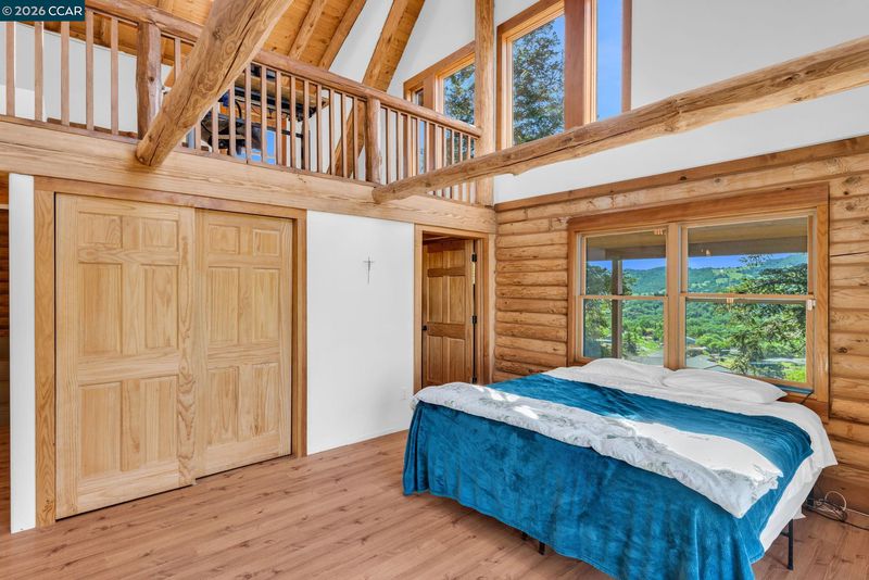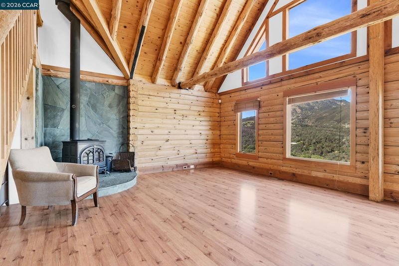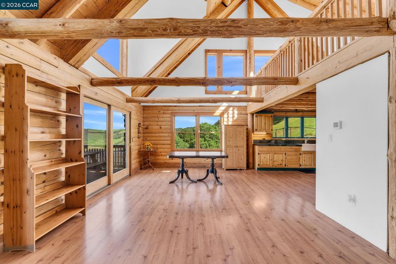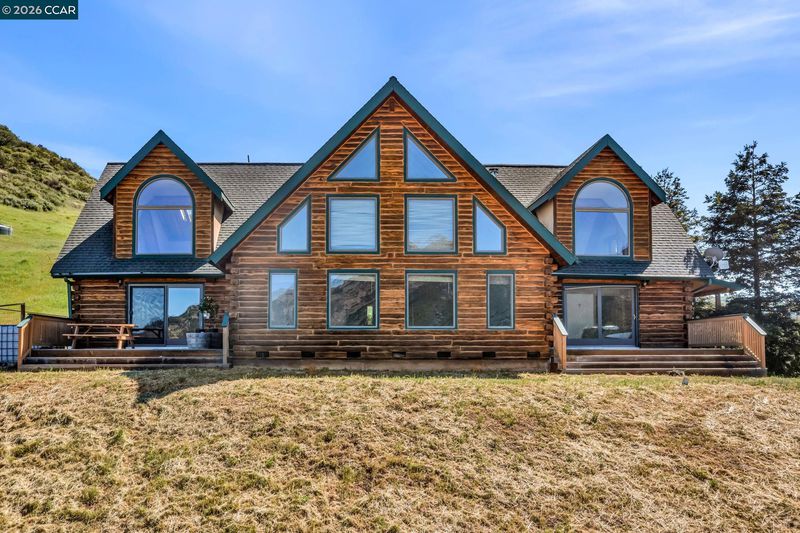 Experience everyday living like a vacation in this one-of-a-kind custom log cabin, beautifully perched on a hillside to capture breathtaking, nearly 360-degree views from every window. With 3,138 square feet of thoughtfully designed living space, this 4-bedroom, 3-bathroom home blends rustic charm with modern comfort. Stunning open-concept great room features a dramatic two-story wall of windows that floods the space with natural light and perfectly frames the views. Fireplace anchors the room, creating an inviting atmosphere for relaxing or entertaining. Kitchen offers a gas stove, abundant counter space & walk-in pantry, all seamlessly flowing into the dining area. From here, step out onto the deck—ideal for indoor-outdoor dining/ living and taking in the spectacular scenery. The main level features a primary suite complete with a private loft—perfect for a home office, reading nook, or creative space—along with a secondary bedroom featuring ensuite bathroom. Upstairs, you’ll find two additional bedrooms, a full bathroom, and a large bonus loft. The setting is truly unmatched, with unobstructed panoramic views of Mt. Diablo & rolling foothills in every direction. With ample usable land, there’s plenty of room for animals, toys, etc. 3+miles from downtown, schools, shopping
