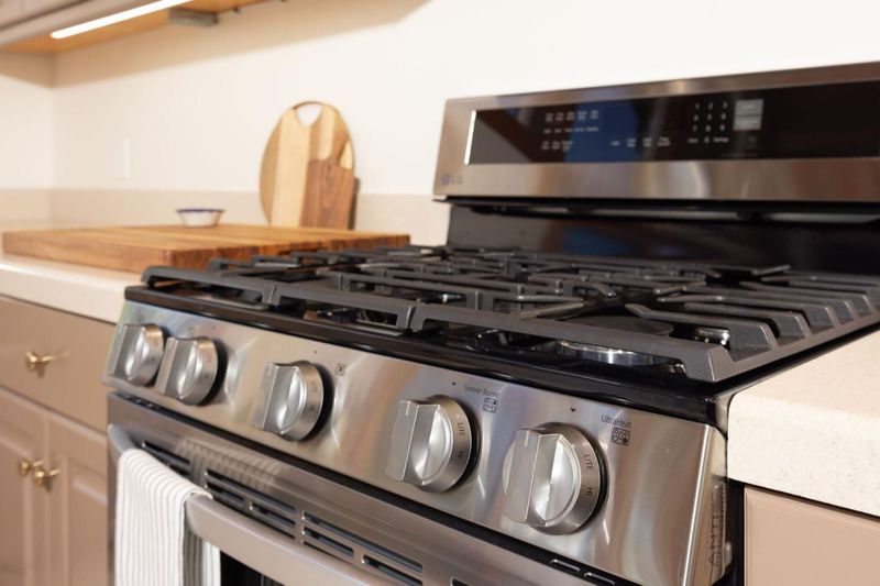 - Countertop - Solid Surface / Corian, Dishwasher, Garbage Disposal, Hood Over Range, Ice Maker, Oven Range - Gas, Refrigerator