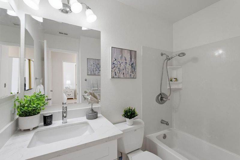 A warmer end of unit condo home , located at a well maintained complex in North Valley San Jose. 2nd floor & grand floor plan. The end of unit bright with nature light daily, Recently replaced new luxury vinyl floors through out, New cabinets at Kitchen & BAthrooms, New quartz counter tops at kitchen, New stainless steel appliances: Stove, Cooking fan , Dishwasher, Refrigerator, Disposal. Double pane windows, Recessed lights. Fresh painted interior walls. & ceilings. Move in ready. One car detached garage # 107. Community club house & pool. Facing goulf course with great privacy. Near Costco, Post Office, Ranch 99 & H Mart supermarket, BART Station, Super Micro. Easy to access HYW 880, 680 & 101