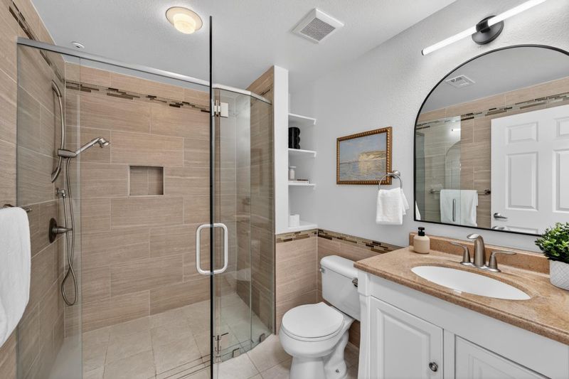 - Full on Ground Floor, Granite, Primary - Stall Shower(s), Tile, Updated Bath
