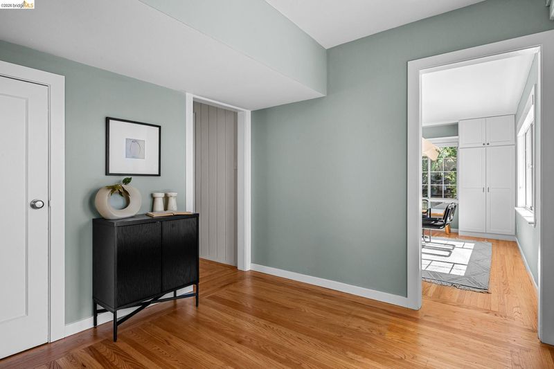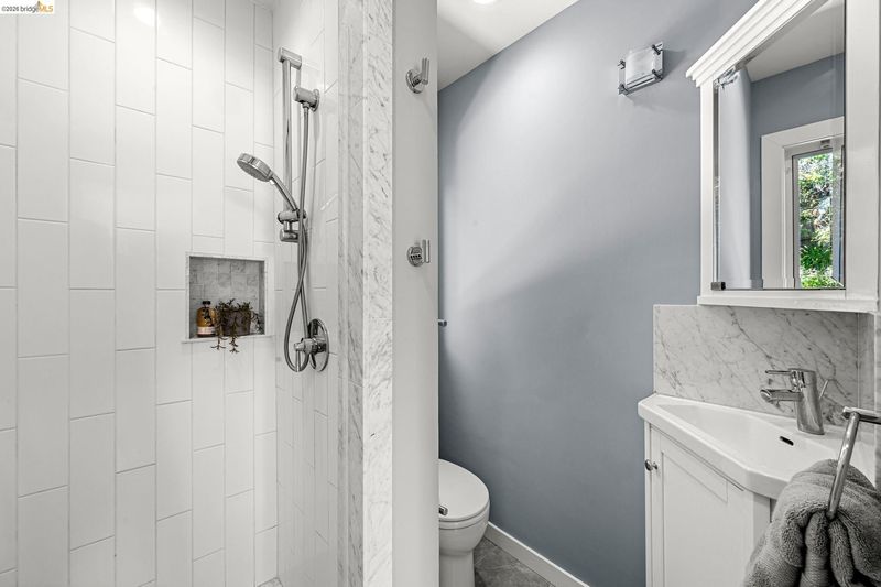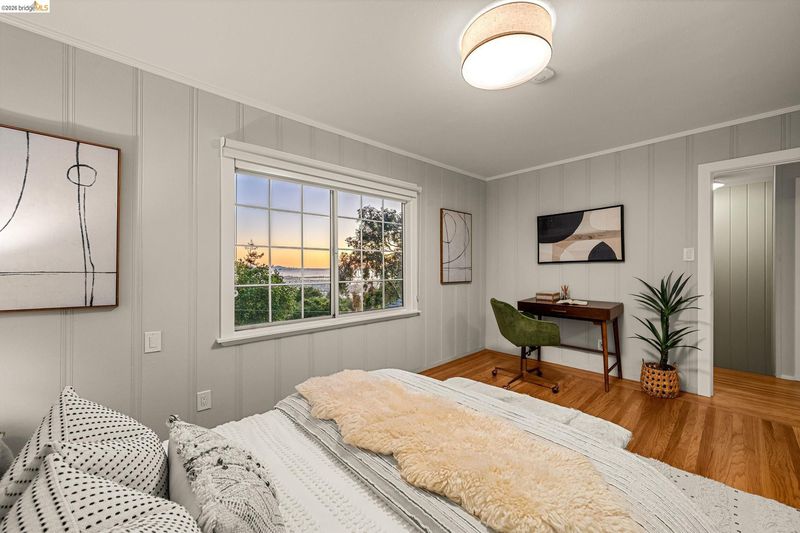 Light, space, and sweeping Bay views take center stage in this reimagined 4-bedroom, 4-bath home in Berkeley’s coveted Thousand Oaks. Spanning 2,684 square feet, the interiors strike a balance of clean lines and comfortable warmth. An updated kitchen with new counters, backsplash, range, and fixtures flows into expansive living spaces framed by panoramic views of the Bay, city, and bridges. Upstairs, three generous bedrooms, including a spacious primary suite and a dedicated office, create a true elevated retreat. Downstairs, a finished media room with a full bath, interior access, and its own entrance offers rare flexibility, think guest quarters, teen room, work-from-home, or a separate living space. Outside, the home unfolds in layers: a view-rich deck above the detached garage with serene park views, a welcoming front porch, and terraced grounds that invite dining, play, or a quiet moment in the sun. With A/C, seismic retrofit, and a location directly across from John Hinkel Park, this is a home that lives easily and stretches with you, all in one of Berkeley’s most sought-after enclaves. BESO energy score: 5.