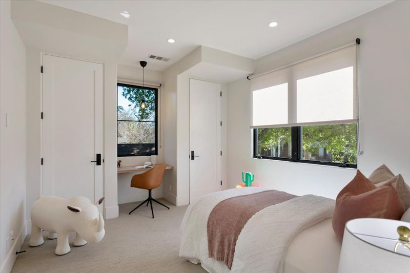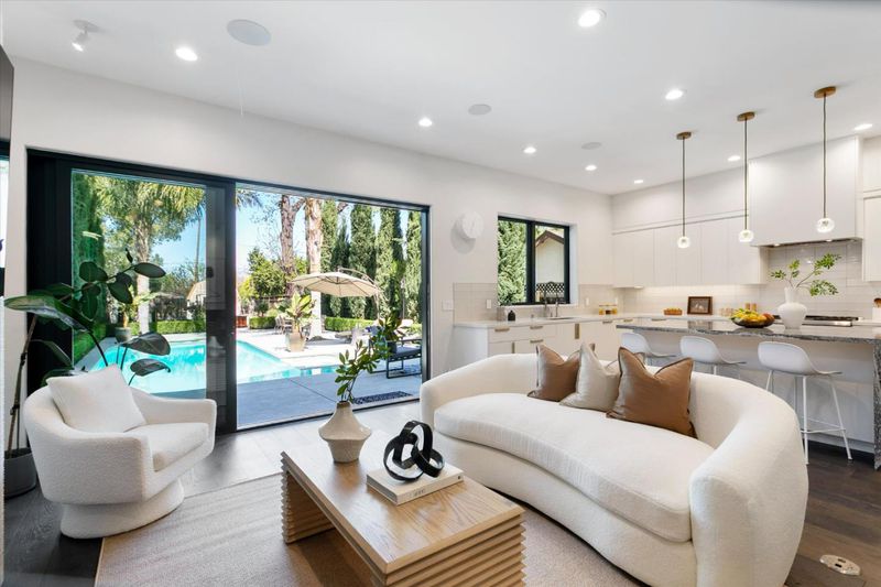 This custom-built Spanish residence blends timeless elegance with modern luxury. With 10-foot ceilings, wide-plank oak floors, and oversized windows flooding the space with light, every detail exudes sophistication. Highlights include gold Grohe hardware, RH lighting, Nest dual-zone climate control, and premium finishes throughout. The main level features a bespoke wrought-iron front door, a private side patio, and a chefs kitchen with Thermador and Miele appliances, a 72-bottle Gaggenau wine fridge, and a stunning Cambria Quartz waterfall island. The great room impresses with a 63-inch linear fireplace and space to host gatherings of up to ten. A flexible main-level suite with a private entrance and kitchenette is perfect for guests or extended family. Upstairs, two bedrooms share a stylish bath, while the primary suite offers a spa-like bathroom with triple skylights and a boutique-style walk-in closet. The private backyard boasts a sparkling pool, spa, and a finished shed ideal as an office or workshop. This home is a showcase of craftsmanship and comfort.