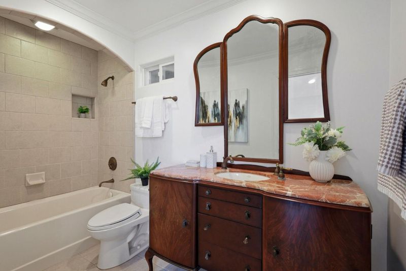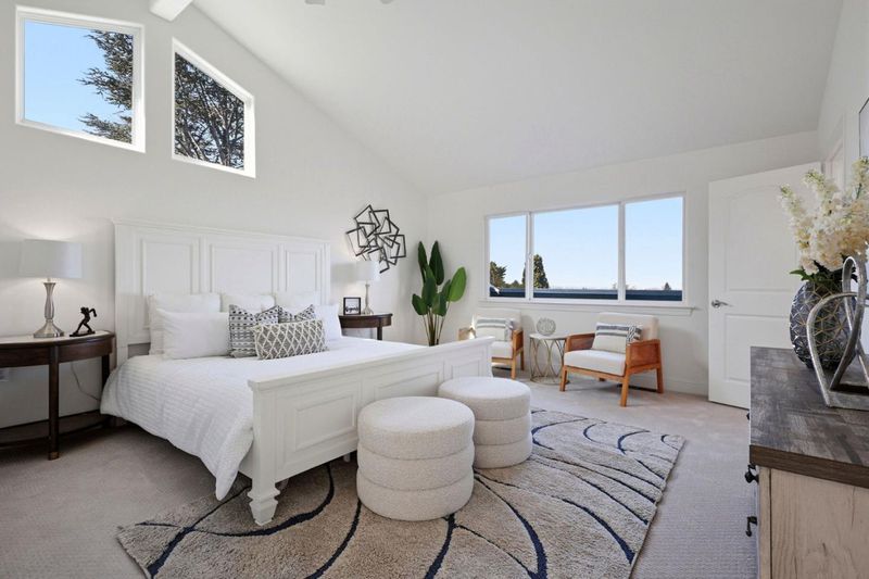 Rarely does a Belmont home combine sweeping Bay and hillside views with four spacious bedrooms, each with its own private en-suite bathroom. Spanning approximately 2,800 square feet, this thoughtfully designed residence offers comfort, privacy, and exceptional space for both everyday living and effortless entertaining. At the center of the home is a beautifully appointed kitchen featuring a gas cooktop, solid-surface countertops, and a double oven. A separate dining room is ideal for hosting dinners and gatherings, while the family room opens seamlessly to the kitchen and backyard. A dedicated home office offers a quiet, private space ideal for remote work or study. Soaring ceilings, skylights, and hand-painted sidelights enhance the homes light-filled, sophisticated aesthetic. Modern comforts include central air conditioning, ceiling fans, energy-efficient double-pane windows, and a retractable sunshade over the patio. Additional highlights include generous walk-in closets and an indoor laundry area. Every detail reflects timeless elegance and elevated comfort. Ideally situated on a desirable cul-de-sac with top-rated schools and convenient access to local amenities and transportation, this home presents a rare opportunity to enjoy beautifully designed living in Belmont.