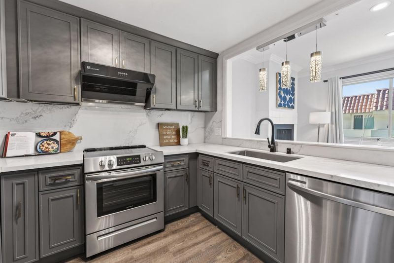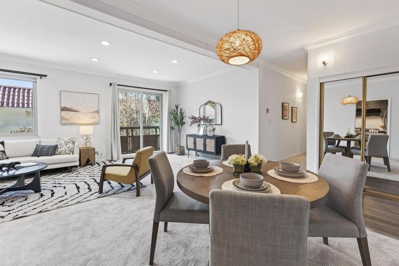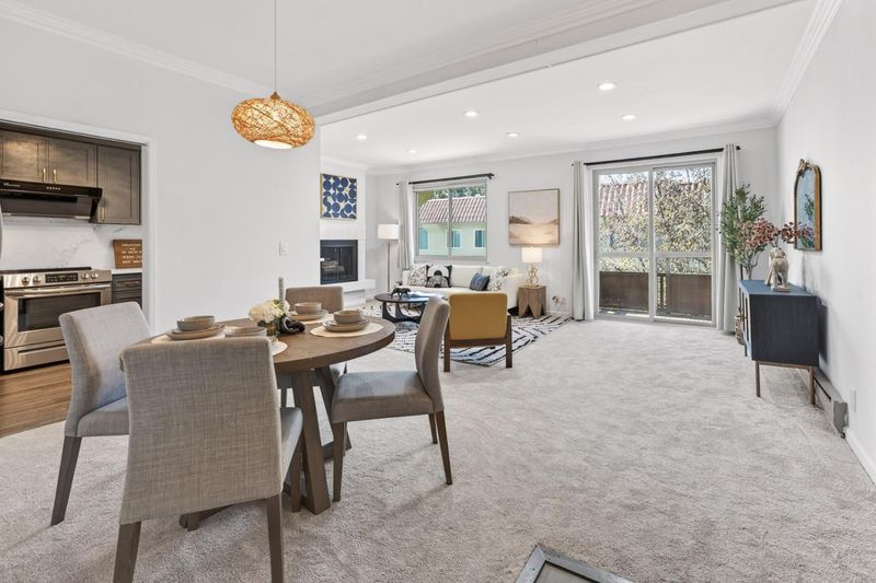 Prime location and excellent move-in condition! This 2-bedroom, 2-bathroom unit is ideally situated on the top floor with views of the pool and the hills. Open, airy layout with high ceilings. Bright and spacious living room with natural light throughout, a cozy fireplace and direct access to a private balcony with view of green and distant mountain. 2 generously sized bedrooms, a fully upgraded kitchen, and two beautifully renovated bathrooms. Newer carpet and flooring, dual-pane windows, and an in-unit laundry room add comfort and convenience. The primary bedroom includes a walk-in closet and its own private balcony. A large private storage unit is also included, making this unit move-in ready. Short walk to shopping, dining and the luxury theaters at the Hillsdale mall with abundant shopping, dining, and everyday conveniences nearby. Perfect for comfortable and convenient city living.