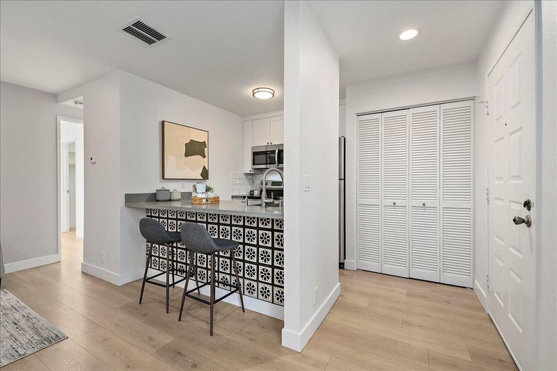 Discover this quaint community situated between Willow Glen and Downtown San Jose / Perfect for any first-time buyer or savvy investor / Sliding glass door from the living area to your SB326 compliant balcony offers stunning views from the third floor overlooking the common area greenbelt and redwood trees / Recently updated with vinyl floors and recessed lighting / Quartz counters on shaker cabinets and stainless-steel appliances compliment the kitchen / Bedroom has ceiling fan and the large walk in closet with custom shelving provides ample storage space / Indoor laundry is super convenient and efficient / Freshly painted with warm colors and crisp white moldings / One car garage with new automatic opener plus another assigned parking space / The community features professional landscaping and a hot tub that is perfect for relaxing / Easy access to Caltrain and VTA light rail will get you or your tenants quickly to all the top tech companies in Silicon Valley / Close proximity to The Shark Tank and SJSU plus everything Downtown San Jose / Welcome Home !