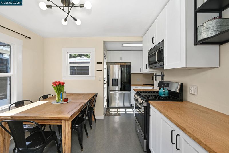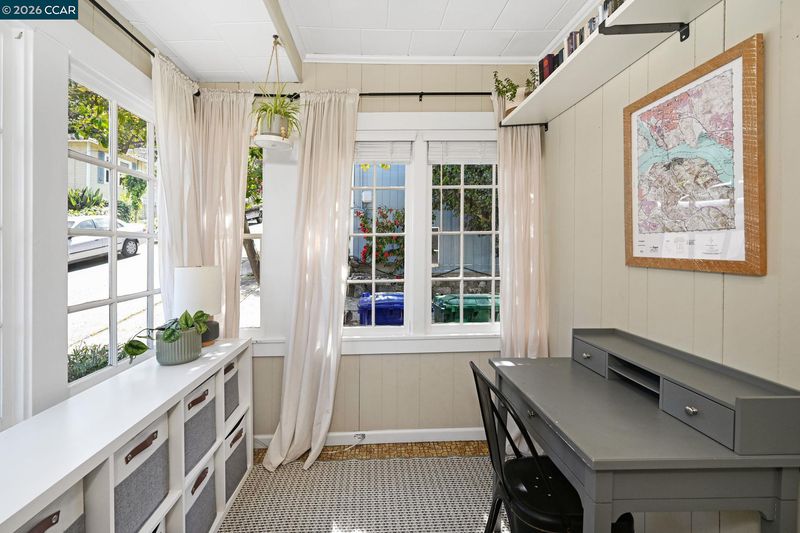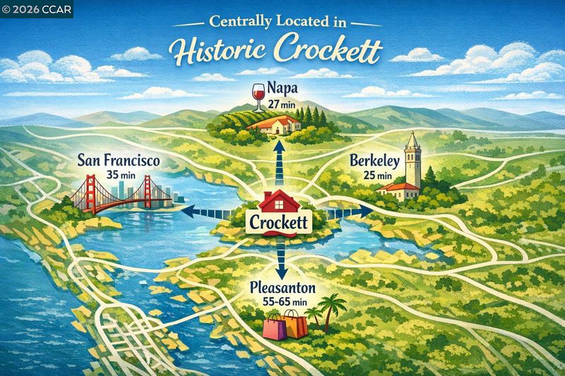 Welcome to 26 Cooke Street, a charming single-story bungalow with a detached studio in the heart of Crockett, where classic character meets thoughtful updates. Enter through the sun-drenched enclosed patio into open living and dining areas that flow seamlessly into a beautifully remodeled kitchen blending modern convenience with vintage style. Original hardwood floors, dual-pane windows, and updated lighting preserve the home’s timeless appeal. Two bright bedrooms offer comfortable retreats, while the bathroom features classic tile, a shower-tub combination, and a pedestal sink. The detached carriage-style garage has been partially converted into a versatile studio with its own bathroom, plus a dedicated laundry area—ideal for guests, a home office, or creative space. Enjoy the newly built deck, perfect for entertaining, along with low-maintenance landscaping. A spacious basement provides additional room for storage, hobbies, or a workshop. Located just blocks from the Crockett Community Center with pool, park, and tennis courts, and close to local shops, dining, and scenic Carquinez Strait views, this home offers small-town charm with convenient Bay Area access.