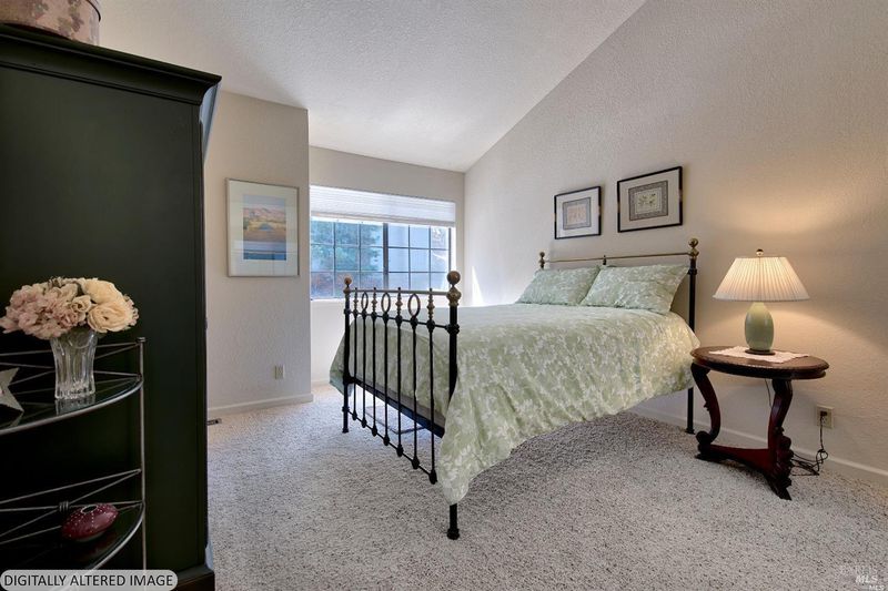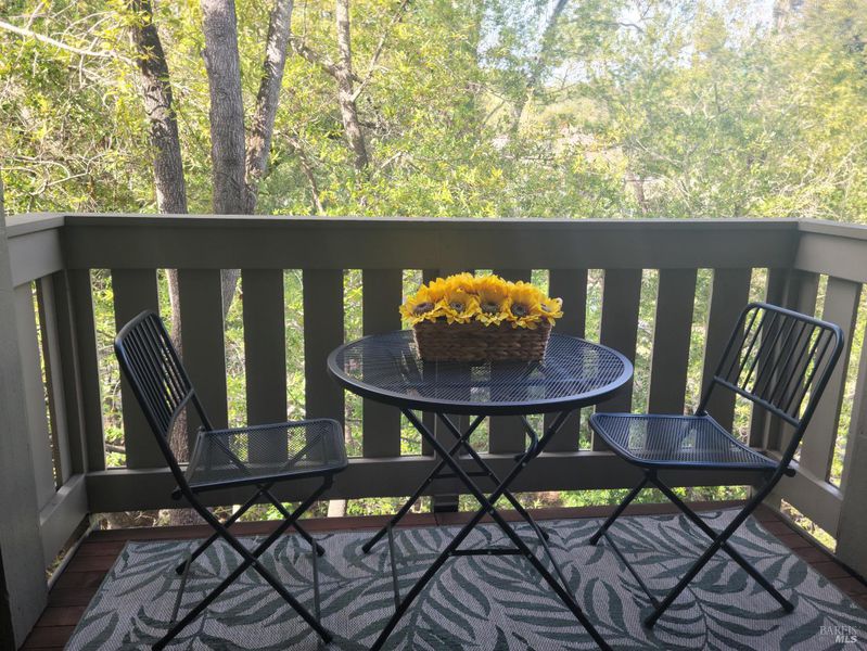 Peaceful, inviting top floor with cathedral ceiling living room and dining area. 2BR + loft 2.5BA with relaxing wooded views. Many upgrades. new carpet, new paint, new heating, new decking and new entrance walkway. Gas fireplace in living room. Sliding glass doors to cozy deck. Direct entrance from single car garage to main floor LR, Kitchen, DR area, half bath, laundry. Extra storage below. Shared community pool and playground. Hiking & biking trails throughout bucolic Pacheco Valley,