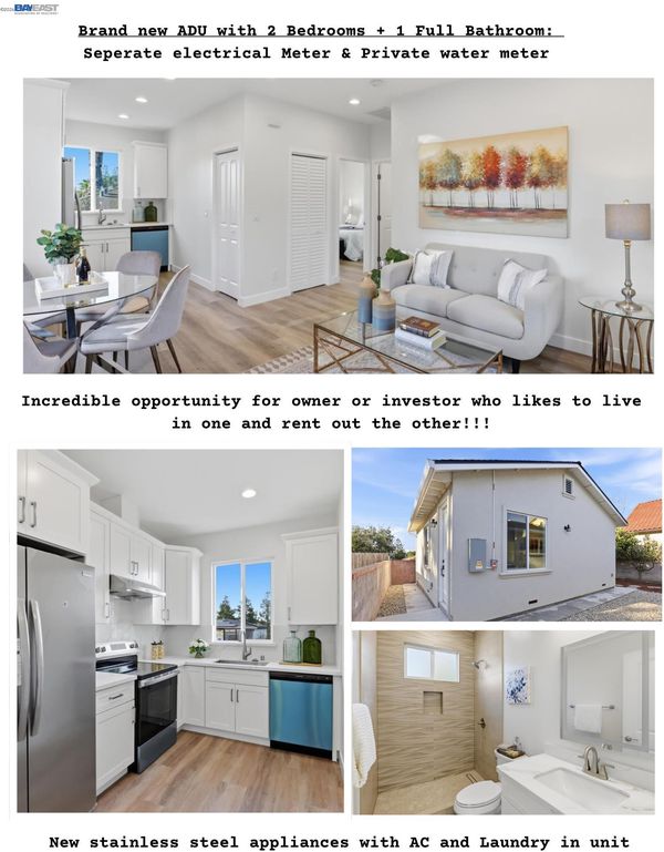 Two newly renovated houses on one lot offer a rare blend of luxury and versatility. The property includes a primary residence and a fully equipped Accessory Dwelling Unit (ADU), each with its own 200-amp electrical meter and private water meter—ideal for multi-generational living or rental income. Step inside the main home and be greeted by soaring ceilings and elegant engineered hardwood floors. The modern gourmet kitchen is designed to impress, featuring quartz countertops, a center island, stylish backsplash, and stainless steel appliances including a refrigerator, dishwasher, and range hood. Upgrades throughout the property include new double-pane windows, fresh interior and exterior paint, recessed lighting, and beautifully finished flooring. The home also boasts a new roof and central heating and air conditioning for year-round comfort. The remodeled bathrooms showcase sleek stall showers, contemporary vanities, and LED mirrors. The spacious primary suite includes a large walk-in closet, offering both comfort and convenience. Located near top-rated schools, as well as a variety of shopping and dining options, this exceptional property presents an outstanding opportunity for homeowners and investors alike—live in one home while generating income from the other.