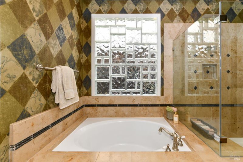 - Double Sinks, Jetted Tub, Shower Stall(s), Tile, Tub
