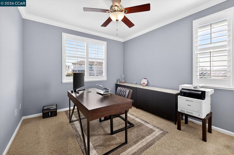 Welcome to this exquisite residence nestled in the prestigious Positano Development, where luxury meets modern convenience in a highly sought-after community. Discover a bright and inviting interior bathed in natural light both morning & afternoon. Main level boasts gleaming hardwood floors, custom designer painting that adds a touch of elegance to every room. The stunning chef's kitchen, featuring a spacious island, ample counter space, abundant cabinet storage, and a convenient walk-in pantry—perfect for culinary enthusiasts. Adjacent, cozy family room invites relaxation with a gas fireplace, downstairs bedroom and full bath. Upstairs, you'll find spacious bedrooms, custom closet organizers, along with a large bonus loft for relaxing or study. Upstairs Laundry room. The home is thoughtfully designed for efficiency and sustainability, including owned solar system, tankless water heater, whole house water filter, Tesla EV charger in the 3-car garage, w/ epoxy-finished floor. Level private backyard is an entertainer's dream, designed for gatherings and children's play. Gas fire pit, lush garden areas, all in complete privacy. The location is unbeatable: surrounded by neighborhood parks, fantastic schools, minutes from restaurants, Costco, shopping centers, hospitals, 580 Fwy