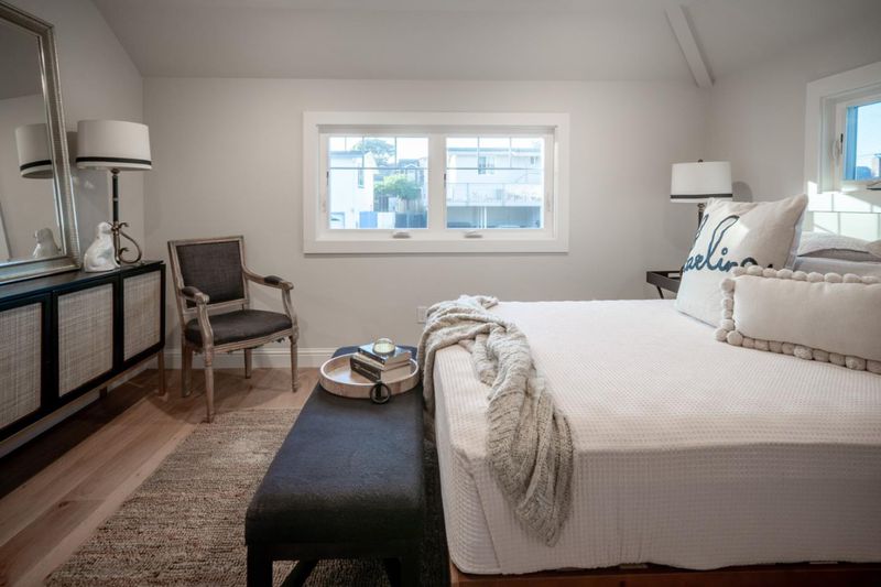 Experience the quintessential Pacific Grove lifestyle in this meticulously renovated 1908 beach cottage. Situated among historic landmarks, you are just two blocks from downtown and five blocks from the stunning coastline. The interior features an airy, open-concept floor plan with European white oak floors and light filled living spaces that flow seamlessly through French doors to a private patio. The chef-inspired kitchen boasts quartz countertops and premium appliances. Each bedroom serves as a private retreat with its own designer-tiled full bath; the primary suite includes a spacious walk-in closet, a double-sized shower, and direct garden access via French doors. Stripped to the studs, this home offers: new roof, plumbing, electrical, drywall, energy-efficient casement windows, landscaping, structural retaining wall, EV charging outlet and a refreshed detached one-car garage. Located minutes from Pebble Beach, Carmel-by-the-Sea, and the Monterey Bay Aquarium, this home offers the perfect blend of vintage charm and modern luxury for a full-time residence or coastal getaway.