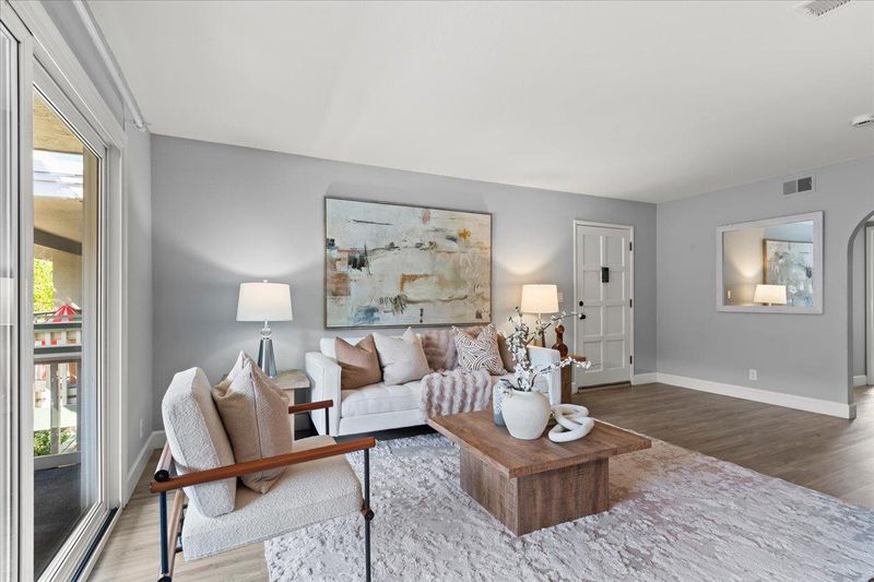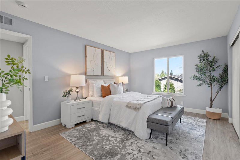 Tucked within the desirable Kentfield Condominiums, this beautifully remodeled top-floor residence offers a rare opportunity to enjoy elevated living in the highly sought-after Cupertino school district. Filled with natural light, the home showcases a spacious, well-designed layout with a generous living room, large primary suite, and two fully renovated bathrooms with modern finishes. The thoughtfully updated kitchen features tasteful design and functionality, while new laminate flooring, fresh interior paint, updated lighting, double-pane windows, and an in-unit laundry room add comfort and convenience throughout. Step outside to a private balcony perfect for relaxing or enjoying the sunshine from this premium top-level location. Residents enjoy access to community amenities including a swimming pool, clubhouse, and BBQ area. Ideally situated near Apple Park, major commute routes (85, 280, 880, Lawrence & San Tomas Expressways), Santana Row, shopping, dining, SJSU, and the airport. An exceptional blend of style, location, and top-tier schools, this home presents an outstanding opportunity for both homeowners and investors seeking entry into the Cupertino school district.