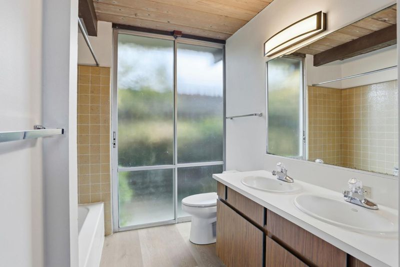 827 Cumberland Drive is a classic Eichler Atrium home in the heart of Sunnyvale. Built in 1967, designed by mid-century architect Claude Oakland, 2,218 sq ft residence is a highly desirable Atrium model and part of the final generation of Eichler homes, incorporating refinements developed over decades of Eichler design. Set on a 7,812 sq ft lot, the 5 bedroom and 3 bathrooms home has an open, light-filled floor plan that exemplifies mid-century style. Signature Eichler features include vaulted open-beam ceilings, floor-to-ceiling glass, radiant heated floors (recently inspected), and a brick wood-burning fireplace anchoring the living and dining areas. Open-air atrium w/ dual sliding-door access creates a striking entry & fills the home w/ natural light. The large kitchen family room retains original Eichler character w/ tile countertops, cooktop & oven, dishwasher, built-in table, breakfast bar, & walk-in pantry. Primary suite features a walk-in closet, dressing area, & ensuite bath. A private bedroom on the kitchen side w/ separate exterior entrance offers flexibility for guests or in-law use. Homestead High, Sunnyvale Middle & Cumberland Elementary, Las Palmas Park, the Sunnyvale Library, Caltrain, major commute routes, and leading Silicon Valley employers are all nearby.