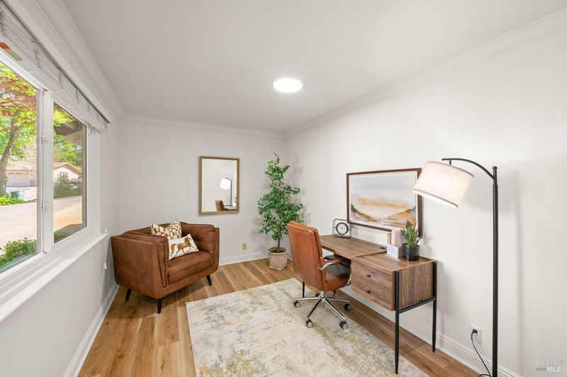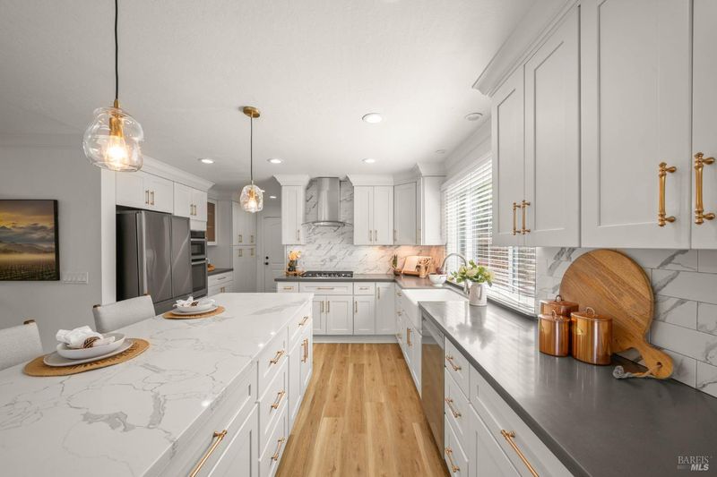 Discover an extraordinary luxury custom home on over a half-acre in prestigious, serene Wykoff Estates of North Vacaville minutes to Alamo Park, the freeway, and downtown. Never before on the market, this one-of-a-kind residence offers unobstructed countryside views, new LVP flooring and carpet, fresh interior and exterior paint and modern finishes throughout. The bright, chef-ready kitchen is a showpiece: white shaker cabinetry, quartz countertops and oversized island with seating, marble-look tile backsplash, stainless steel appliances, designer pendant lighting, recessed lights, and a sunny dining area overlooking the landscaped yard. The stunning living room features vaulted, beamed ceilings, oversized custom windows that flood the space with natural light and frame lush yard and oak-canopy views, and warm wood tones that create an inviting, airy retreat.The generous bedroom suite is a peaceful retreatwide windows capture verdant backyard and hillside vistas, bathing the room in natural light and creating a serene connection to the outdoors. The professionally landscaped backyard is an entertainer's dream: a brand-new Pebble-Tec pool with a broad sun deck, adjacent Hot Springs hot tub, shaded dining and lounge areas, mature oak canopy for privacy, lush lawn, kids' playset and trampoline, along generous paved areas ideal for outdoor living and events. Soaring custom windows bring the outdoors in; a large flex room with private separate entrance is perfect for multigenerational living, an office, or a kids' retreat. The wide driveway allows RV parking and the spacious backyard can accommodate a large ADU. Solar-equipped roof, electric car charger, 3 storage sheds and a peaceful, private setting complete this rare offeringimpeccable inside and out.