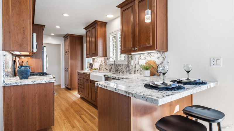 This beautifully maintained, updated single-level home in a highly desirable Bennett Valley neighborhood offers comfortable, effortless living. Set on a large lot, the home is filled with natural light and features an open, airy floor plan. Hardwood floors and plantation shutters add charm and character throughout. The updated kitchen boasts granite countertops, a farmhouse sink, stainless appliances including refrigerator, and an eat-in bar opening to a breakfast nook with sliding glass door, providing direct access to the backyard for seamless indoor-outdoor living. The cozy living room features a fireplace and built-in shelving, perfect for everyday living and entertaining. Additional features include a newer roof, central air conditioning, low-maintenance landscaping with raised gardening beds, an indoor laundry room with washer and dryer included, and a two-car garage. Ideally located near shopping, dining, and outdoor recreationincluding Whole Foods, Spring Lake Regional Park, and Bennett Valley amenitiesthis home is also just minutes from Montgomery Village, offering a lifestyle that combines convenience, community, and the relaxed charm of one of Santa Rosa's most sought-after neighborhoods.