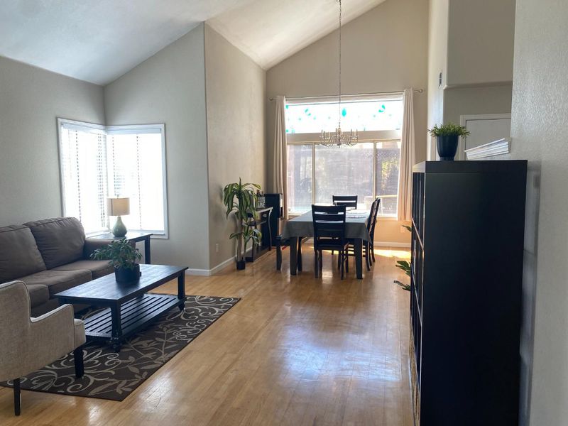 Cul de sac. 4 bedrooms, 2.5 baths. Wood floors in the living and dining with cathedral ceilings. Kitchen with granite counter top which opens to the family room with fireplace sliding door opens to the backyard, pool, jacuzzi. 3 car garage.
