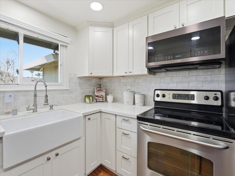 - Countertop - Quartz, Dishwasher, Exhaust Fan, Garbage Disposal, Microwave, Oven Range - Electric