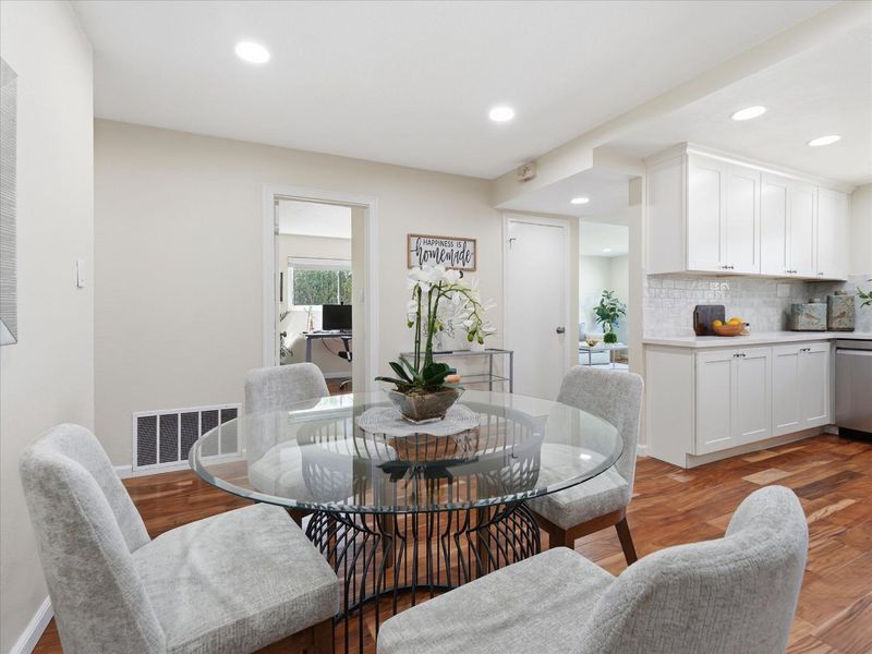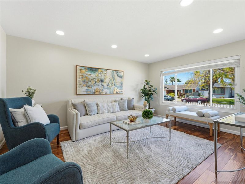 Welcome to this beautifully upgraded single-story home featuring owned solar and a Tesla Powerwall, ideally located in the desirable Blossom Valley neighborhood with top-rated schools. *Nestled on a quiet street, this home offers an expansive backyard with a spacious covered patio, perfect for indoor-outdoor living. *This light-filled residence features a functional floor plan with 4 bedrooms and 2 bathrooms, a spacious living room, and a separate family room with a large slider opening to the backyard ideal for entertaining. *The upgraded contemporary kitchen showcases quartz countertops, white cabinetry, soft-close drawers, stylish backsplash, and stainless steel appliances. *Additional upgrades include Acacia-style hardwood floors, fresh exterior paint, updated bathrooms, dual-pane windows, newer blinds, recessed lighting, central heat & A/C, water softener, and energy-efficient solar with battery backup. *The attached 2-car garage includes a new Wifi-enabled door and motor, & an expanded driveway. *The fenced in backyard with covered patio for dining, gardening, outdoor entertainment. *Conveniently located near Santa Teresa High School, Light rail, Kaiser Hospital, shopping, Westfield Oakridge, with easy access to Highways 87, 85, and 101, downtown San Jose and Peninsula.