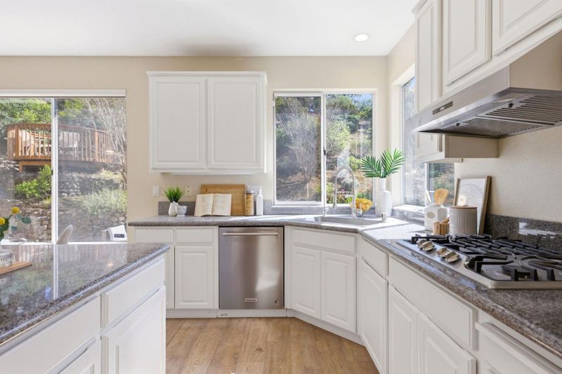- Cooktop - Gas, Countertop - Granite, Dishwasher, Freezer, Garbage Disposal, Hood Over Range, Island, Microwave, Oven - Built-In, Pantry, Refrigerator