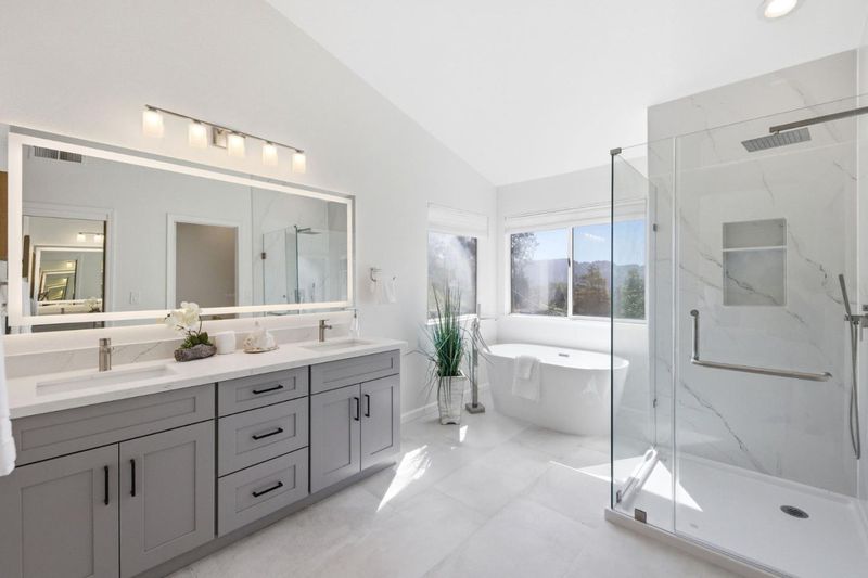 - Full on Ground Floor, Primary - Stall Shower(s), Shower over Tub - 1, Stall Shower, Tub in Primary Bedroom
