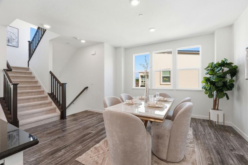 End-unit townhouse-style condo. Bright with abundant natural light. Hill views. One of the largest floor plans in the Onyx community in North San Jose. Built in 2017 by Pulte Homes. Spacious layout with a formal dining area and a living room with a balcony overlooking the lawn. The gourmet kitchen showcases a large island, stainless steel appliances, a gas cooktop, and custom white cabinetry. One bedroom with one full bath is on the main level. Upstairs features the master suite with a dual-sink vanity, a large shower, and a generous walk-in closet with a custom built-in organizer, plus two additional bedrooms perfect for family, guests, or a home office. Two car garage. Tankless water heater. Low hoa $250 monthly. Community amenities include a children's play area, BBQ area, and dog park, with nearby Newbury Park for outdoor recreation. Conveniently located near downtown San Jose and Japantown, with easy access to Costco, Ranch 99, H-Mart, BART, VTA, and freeways 101/680.
