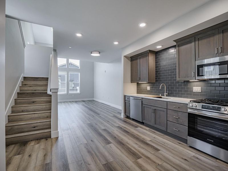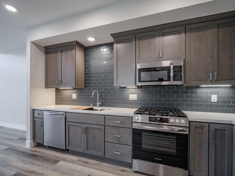 - Countertop - Quartz, Dishwasher, Garbage Disposal, Ice Maker, Microwave, Oven Range - Gas, Refrigerator