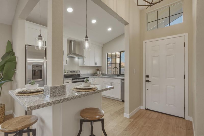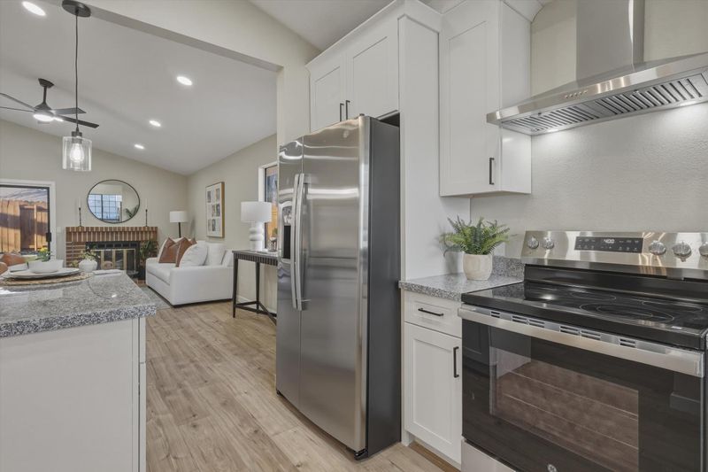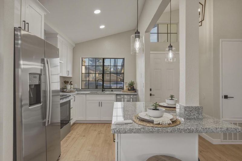 Beautifully updated 3BR 2BA home with cathedral ceilings, brand new roof, features brand new kitchen with stainless steel appliances, new cabinets, totally renovated bathrooms with shower and tub, new vanities. Recessed lighting throughout, has a Family room kitchen combo and dining, New LVP flooring, new paint inside and out, two car garage with garage door opener, Low maintenance yard with new drainage system in the backyard. Close to schools, freeway 80 and 5, and shopping.