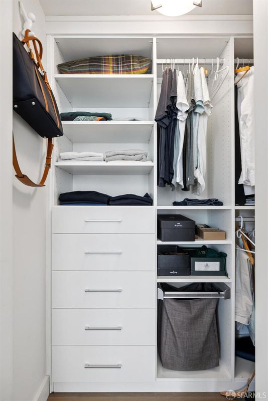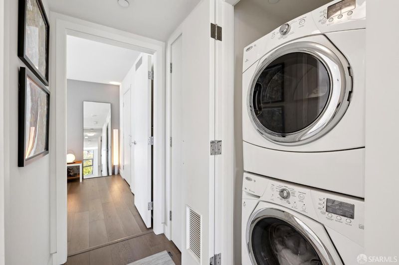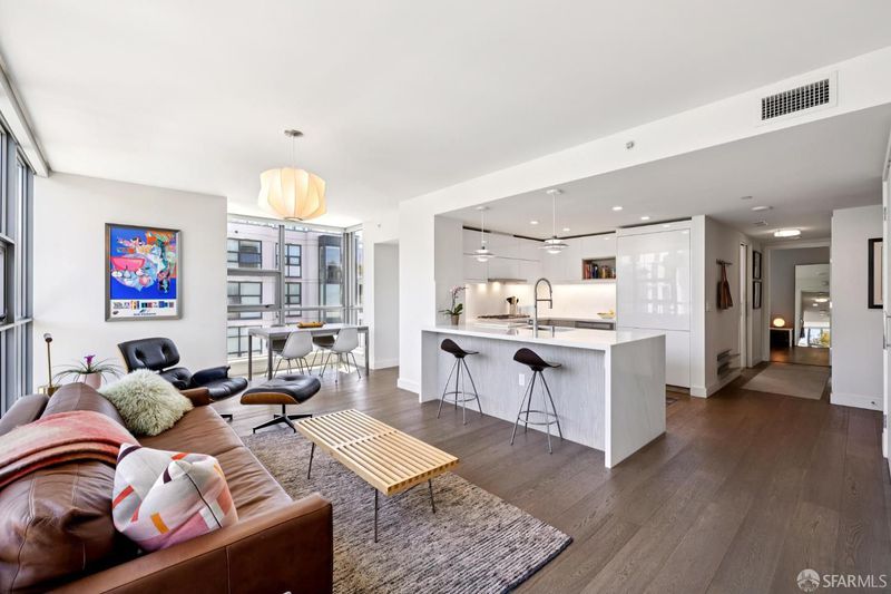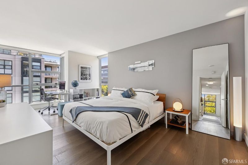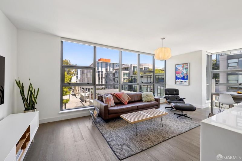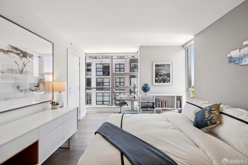 Modern design meets resort-style living at Madrone in Mission Bay. Residence #401 is a rare corner home offering one bedroom, one bathroom, and an airy open floor plan framed by floor-to-ceiling windows and a private balcony that brings in abundant natural light. The fully renovated kitchen is designed with both aesthetics and performance in mind, featuring Thermador appliances, marble waterfall countertops, and sleek custom European cabinetryequally suited for hosting or everyday living. The spacious primary bedroom includes three walk-in closets and an additional flex area ideal for a home office or reading nook. The spa-inspired bathroom has been thoughtfully updated with dual vanities and an oversized marble and glass shower. Additional highlights include in-unit laundry, central A/C, hardwood flooring, automated Hunter Douglas blinds, custom California Closets, a deeded storage cage, and garage parking with an EV charger. Residents of Madrone enjoy a full suite of luxury amenities, including a 24-hour lobby attendant, state-of-the-art fitness center, heated outdoor pool and spa, club lounge, private theater, business center, and landscaped outdoor terrace with BBQ areas. Ideally located just steps from Oracle Park, Chase Center, waterfront trails, parks, Caltrain, and Muniwith easy access to Mission Bay's best dining, coffee, and neighborhood amenitiesResidence #401 offers a refined, walkable lifestyle in one of San Francisco's most dynamic neighborhoods.