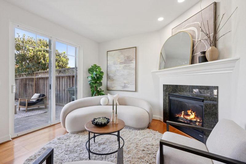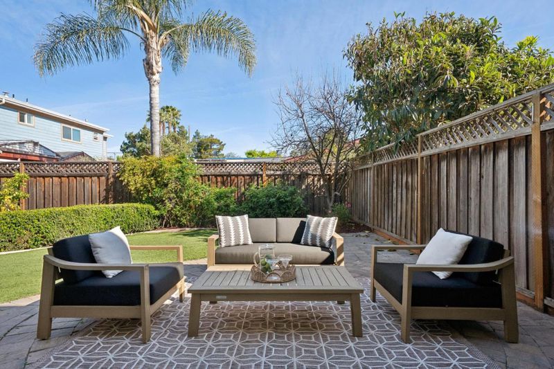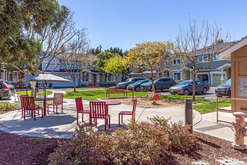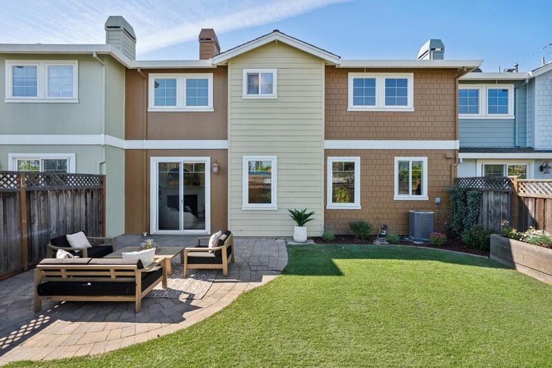 In a convenient Mountain View neighborhood close to downtown, parks, major commute routes, and leading Silicon Valley tech campuses, this charming townhome offers spacious living, a private yard, and a welcoming community setting. A covered front porch and classic shingled exterior create a warm first impression. Inside, a tiled entry opens to bright interiors where hardwood floors and tall windows bring natural light into the front living room. The well-appointed kitchen features granite countertops, natural wood cabinetry, and stainless appliances, and flows easily to the dining area and the fireside family room beyond. Sliding glass doors extend the living space outdoors to a beautifully maintained backyard with a large paver patio, synthetic lawn, fruit trees, and raised garden bed, perfect for relaxing, entertaining, or enjoying time outside. Upstairs, four comfortable bedrooms provide flexibility for family, guests, or workspace, highlighted by a spacious primary suite with two walk-in closets and an en suite bath. Residents also enjoy a central community gathering area with picnic space and a children's play area. With approximately 2,003 square feet and an attached two-car garage, the home offers an appealing blend of space, comfort, and location.