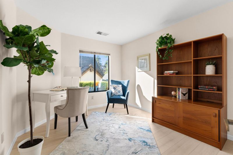 Inviting light & bright single level home with a very desirable floor plan. This home in The Villages Golf & Country Club, a 55+ guard-gated community, offers amenities designed for an active lifestyle. This beautiful home boasts a spacious 2Bd, 2.5Ba plus an office/3rd bedroom layout, covering 1751 sq.ft. Well-appointed, this home has thoughtful updates throughout. Updates include Instant hot water system, New garage door, New Paint throughout the home. The Kitchen has New lighting, New built-in Microwave and Range, solid surface Corian counters and extra cabinetry surrounding a sunny nook. The flooring and baseboard have just been replaced with luxury vinyl throughout for a seamless look and durable wear. The large windows throughout the home bring in lots of sunlight and with the New interior light fixtures, this home is warm and inviting. Enjoy the serene views, including a Meyers lemon and flowering trees surrounding the property. Indulge in a premium lifestyle at The Villages Golf & Country Club, an adult playground of activities from the golf courses to social clubs, pickle ball, tennis, bocce, 4 swimming pools and spas, a fitness center hiking trails, there is a lot of fun to be had. Come enjoy wonderful location and comfortable setting of this beautiful home.