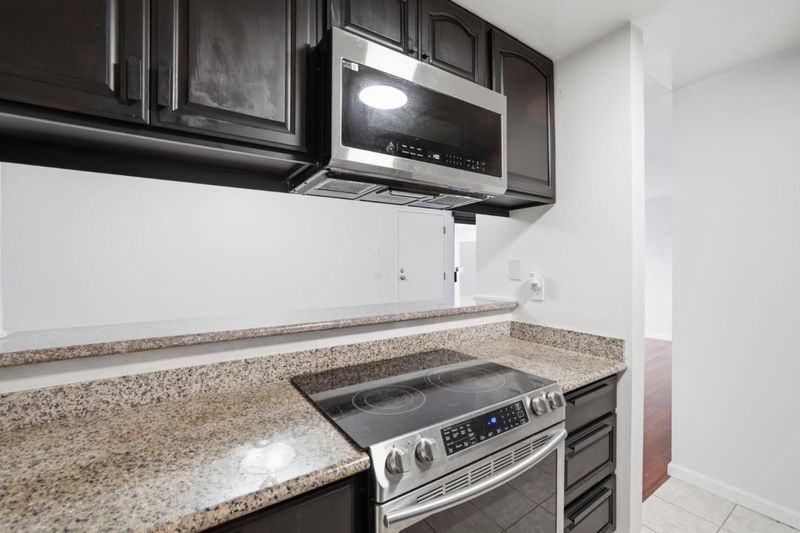 - Countertop - Granite, Hood Over Range, Microwave, Oven Range - Electric, Refrigerator