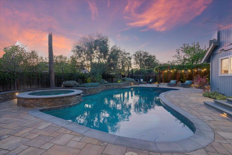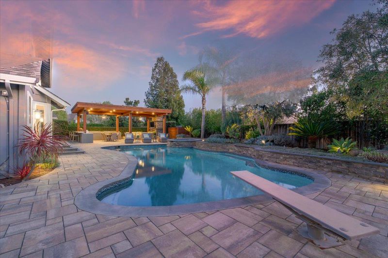 Experience exceptional indoor-outdoor living in this beautifully upgraded home. The incredible backyard is a true retreat, featuring lush landscaping and night lighting for enjoyment into the evening. An elegant bluestone and paver hardscape, bocce court, fire pit, and a fully equipped outdoor kitchen with BBQ, expansive counters and ample seating are a delight. The covered entertainment area with outdoor fireplace and TV creates the perfect setting for year-round enjoyment. The renovated Pebble Tech pool and spa are the perfect addition to this large, private yard, offering space to relax or entertain with ease. Inside, a contemporary design showcases a spacious living and dining room. The kitchen, with granite counters and stainless appliances is open to a light and bright family room with fireplace. Renewal by Andersen windows enhance comfort and efficiency, while owned solar supports both the home and pool. Modern Lutron Caseta lighting adds convenience throughout. The luxurious primary suite is an exceptional large room with three walk-in closets. Spacious secondary bedrooms provide flexibility. Completing the property is an impeccably finished 3 car garage with EV charger, so refined it feels like an extension of the home.