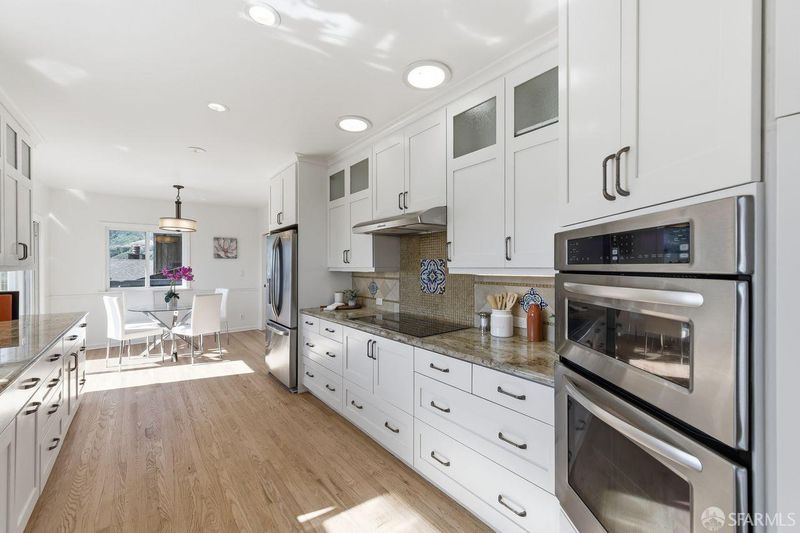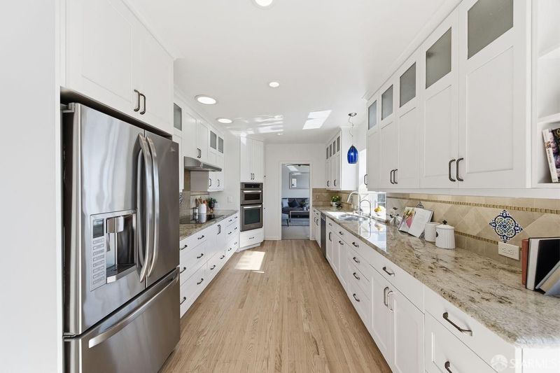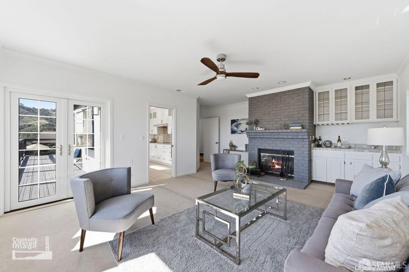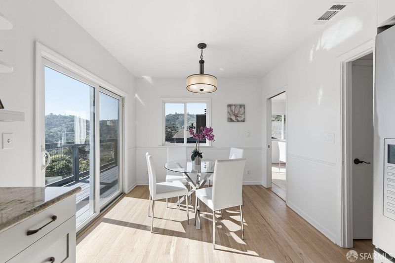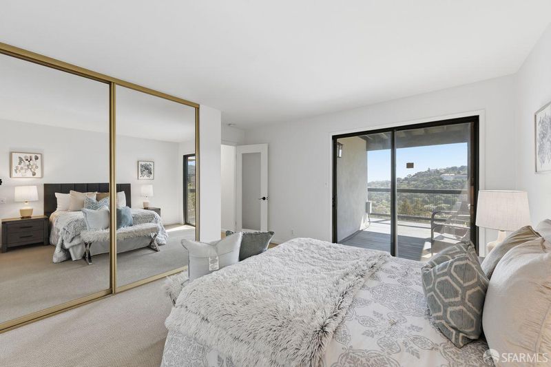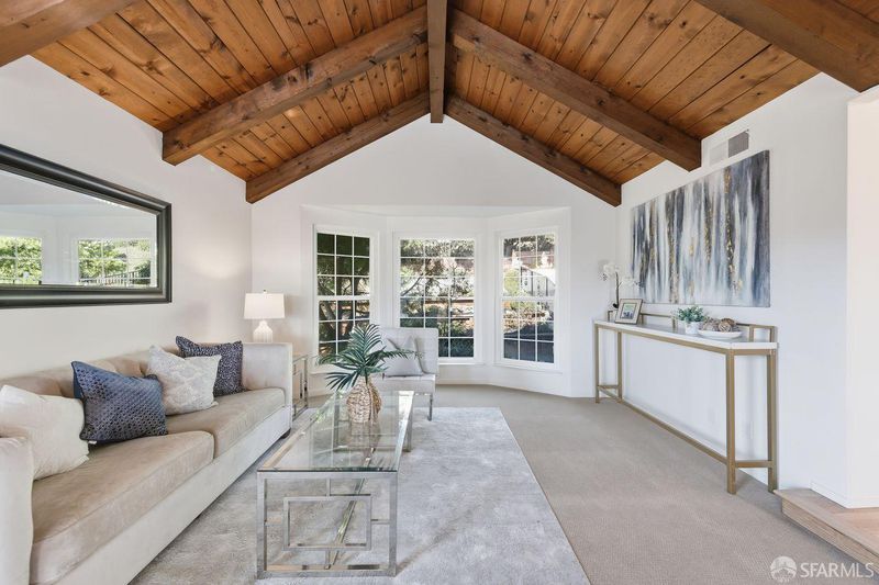 Perched along one of Devonshire Canyon's most desirable ridgelines, 179 Bay View Drive captures sweeping canyon and bay views in a 3 bedroom, 2.5 bathroom residence spanning approximately 3,374 sqft that feels both refined and quietly relaxed. Elevated above the landscape, the home offers privacy, natural light, and the calm hillside atmosphere that makes living on the San Carlos ridgeline so iconic. The main level is defined by dramatic wood beam ceilings, a classic gas fireplace and an electric fireplace, and expansive windows that frame the surrounding canyon greenery and distant bay views. The open living and dining area flow effortlessly onto a generous sun drenched deck, creating a natural extension of the living space. The kitchen is thoughtfully designed with a Thermador induction cooktop and generous workspace suited to a chef's delight. The lower level offers a more tranquil setting anchored by a spacious primary suite with direct access to the lower deck and a built in steam shower in the master bathroom. A dedicated flex room featuring a sauna and shower providing a spa inspired retreat at home. Two additional bedrooms open to the deck, creating a seamless indoor outdoor connection while maintaining privacy from the main living areas. Equipped with a $100,000+ Tesla photovoltaic system, including a Solar Roof and four Powerwall batteries, the home delivers advanced energy efficiency and off the grid power capability, providing sustainability and long term reliability. Tucked into the peaceful hills yet just minutes from vibrant downtown San Carlos, nearby Laurel Street provides a lively mix of cafes, restaurants, and boutique shopping, while outdoor enthusiasts will appreciate easy access to Big Canyon Park and Pulgas Ridge Open Space Preserve. The property is also served by highly rated San Carlos schools, adding to the appeal of this sought after Peninsula location. With its elevated setting, expansive views, and thoughtful design, 179 Bay View Drive delivers refined hillside living in the heart of Devonshire Canyon.