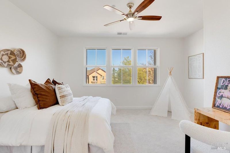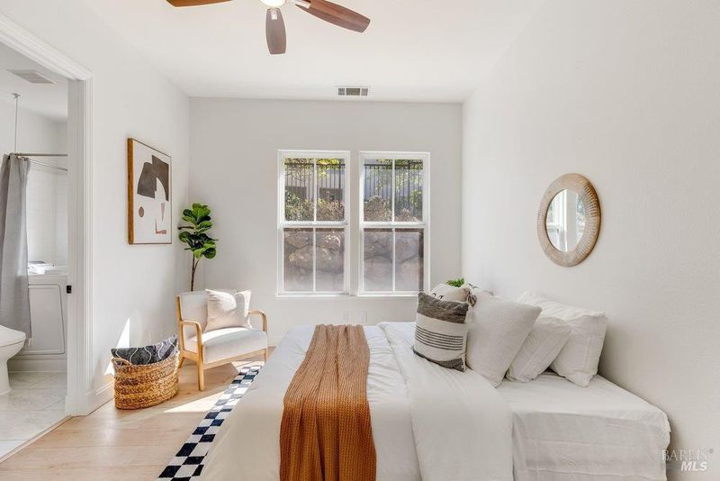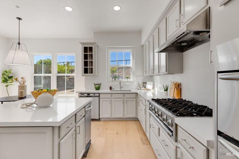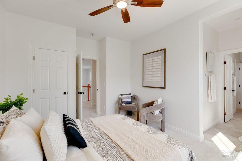 Tucked away on a highly desirable court with no rear neighbors, this West facing home has been beautifully updated. This 4-bedroom, 4-bathroom home offers the perfect blend of privacy, comfort, and versatility- all while being conveniently located near top rated schools. Featuring owned solar, a freshly painted interior and exterior, all new carpet , and a thoughtfully updated kitchen with custom countertops white oak hardwood flooring, a butlers pantry and plenty of storage. This home is move-in ready with modern appeal, the flexible floor plan includes a downstairs bedroom with a private ensuite, complete with a custom walk in jacuzzi tub and bidet ideal for guests or multi-generational living. Upstairs, you'll find three spacious bedrooms, including a luxurious primary suite showcasing marble countertops, a jetted tub, and a walk-in shower. Step outside to a massive backyard filled with mature fruit trees and endless possibilitieswhether you envision an ADU, resort-style entertaining space with gas hookups already available for the perfect barbecue grill, or both. A detached garage adds even more flexibility, perfect for a studio, gym, or home office. This is the one that checks all the boxeslocation, upgrades, and opportunity. You'll want to see it for yourself!