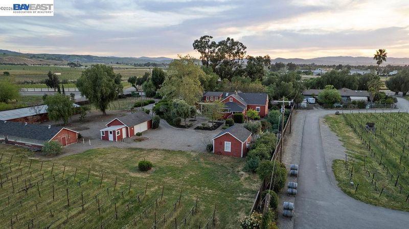 A rare opportunity to reimagine a piece of Livermore’s agricultural heritage on approximately 2.7 acres. This 2,777 sq ft farmhouse offers space, character, and versatility in a sought-after wine country setting. The home features multiple living areas, including a living room with soaring vaulted ceilings and an expansive family room, along with a dining area, functional kitchen, office, and bedrooms that reflect the home’s original footprint. Abundant windows fill the home with natural light and frame picturesque views of surrounding vineyards and rolling hills. A basement! That's right, A BASEMENT, adds flexibility for storage, recreation, or creative use. While the property would benefit from updates and vision, key improvements have already been completed, including a newer roof, central HVAC, and water heater. The grounds include barns, a detached two-car garage, and a guest structure, along with automatic sprinklers and drip irrigation supported by a private well. Existing Syrah grapevines span approximately 0.75+ acres across multiple sections, offering potential for continued use or reimagined agricultural applications. The property is also home to a pair of great horned owls, adding to the natural charm and character of this unique setting.