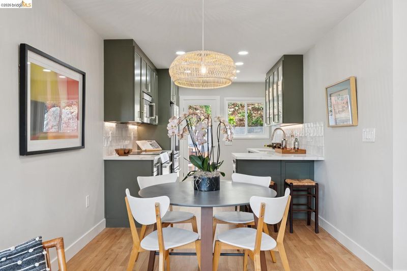 Updated light-filled all-electric midcentury bungalow in enchanting hilltop cul-de-sac setting with views of Wildcat Canyon. Turn-key gem, thoughtfully renovated with a nod to clean modern design. Open plan space lives much larger than its footprint. The glass kitchen door draws you to a patio designed for entertaining, & a gardener's dream side yard sink/potting area. Indigenous rock & recycled concrete terraces, retaining walls, & rustic staircase beside large boulders secure the feeling you're part of a woodland environ where nothing goes to waste. Chef's kitchen with custom maple cabinets, high-end smart Bosch appliances - dishwasher, induction cooktop range, convection oven, warming drawer, and a combo second oven/microwave/exhaust fan. FisherPaykel French door refrigerator, accessorized deep stainless sink, wine frig, under-cabinet lighting, on-demand hot water, breakfast bar, sleek quartz countertops, & hand-made designer backsplash tile complete the kitchen. Spa-inspired bath renovations include custom shower & chair-height toilet. Beyond the cosmetic, you'll find an extensive new drain system, & new/updated electrical, plumbing, roof, driveway & patios front and back. Nearly level in. Transbay bus & BART make commuting a breeze & only about 20 mins to Cal via Arlington