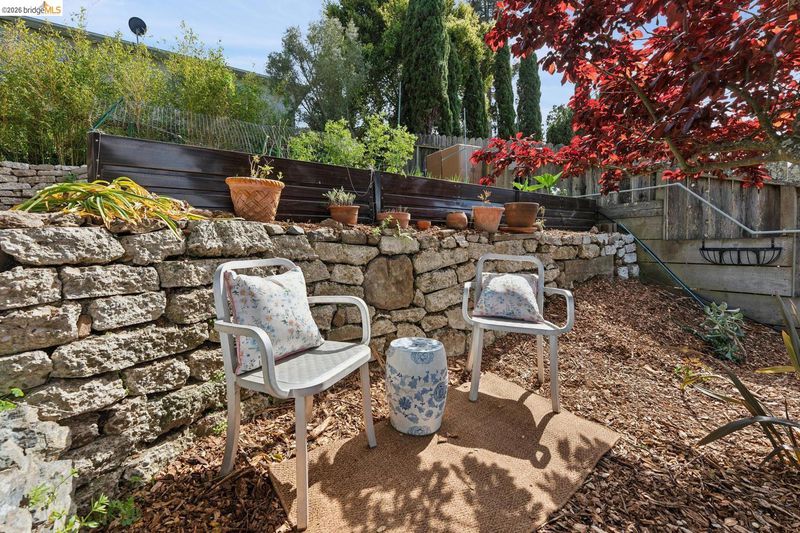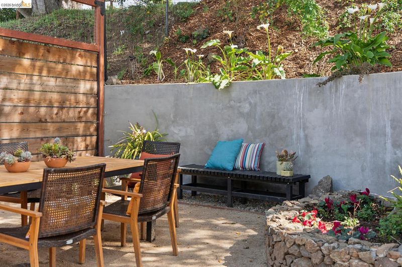 Turn-key, recently updated gardener's paradise with huge entertainer's patio, indigenous stone terraces & boulders, close to hiking trails and transportation routes. Renovated extensively over the last 5 years. All updated systems - electric, plumbing, drainage. All-electric home, with high-end Bosch appliances, on-demand water heater, new roof, patio, french drain, driveway, & great neighbors on a cul-de-sac street with no traffic close to Transbay and BART. $0 pest, sewer done, no trans tax.