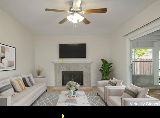 Step into comfort and style in this beautifully updated ranch-style home on a spacious 8,750 sq ft lot. The freshly repainted exterior and lush landscaping create inviting curb appeal. With 1,409 sq ft of thoughtfully designed living space, the home blends modern updates with relaxed California living. Updated kitchen and baths, laminate flooring, and new carpet in the third bedroom make the interior feel fresh and welcoming. The family room fireplace creates the perfect gathering spot for cozy evenings. Important upgrades include updated plumbing throughout, solar panels, central heat and air conditioning, and water softener. Outdoor living shines with a screened-in patio featuring a hot tub, ideal for entertaining or unwinding. The large yard includes automatic sprinklers, a fruit-producing orange tree, and two spacious storage sheds offering flexible space for storage, hobbies, or projects. Additional conveniences include a two-car garage, and washer, dryer and refrigerator are included. A move-in-ready home offering comfort, upgrades, and plenty of outdoor space to enjoy. Images have been digitally staged for illustrative purposes. Furnishings and decor shown are virtual and are not included in the sale of the property. The home may appear different when viewed in person.